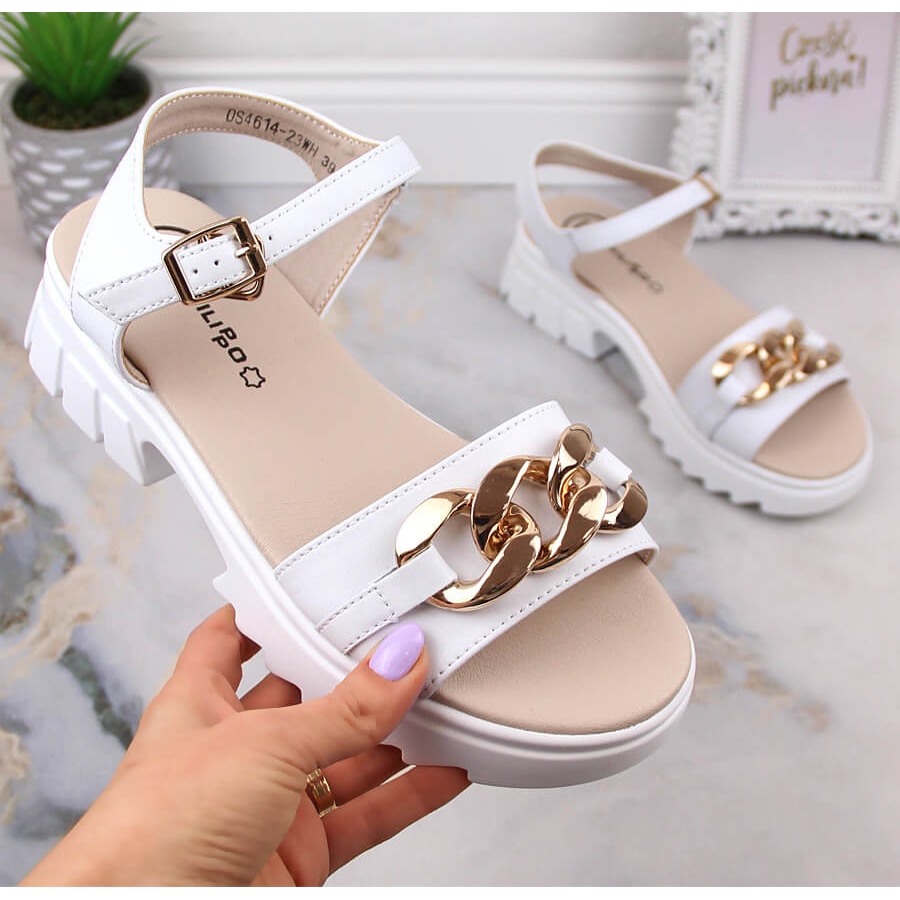 Eleganz im Sommer – Damen-Ledersandalen mit Kette, Weiß Filippo DS4614