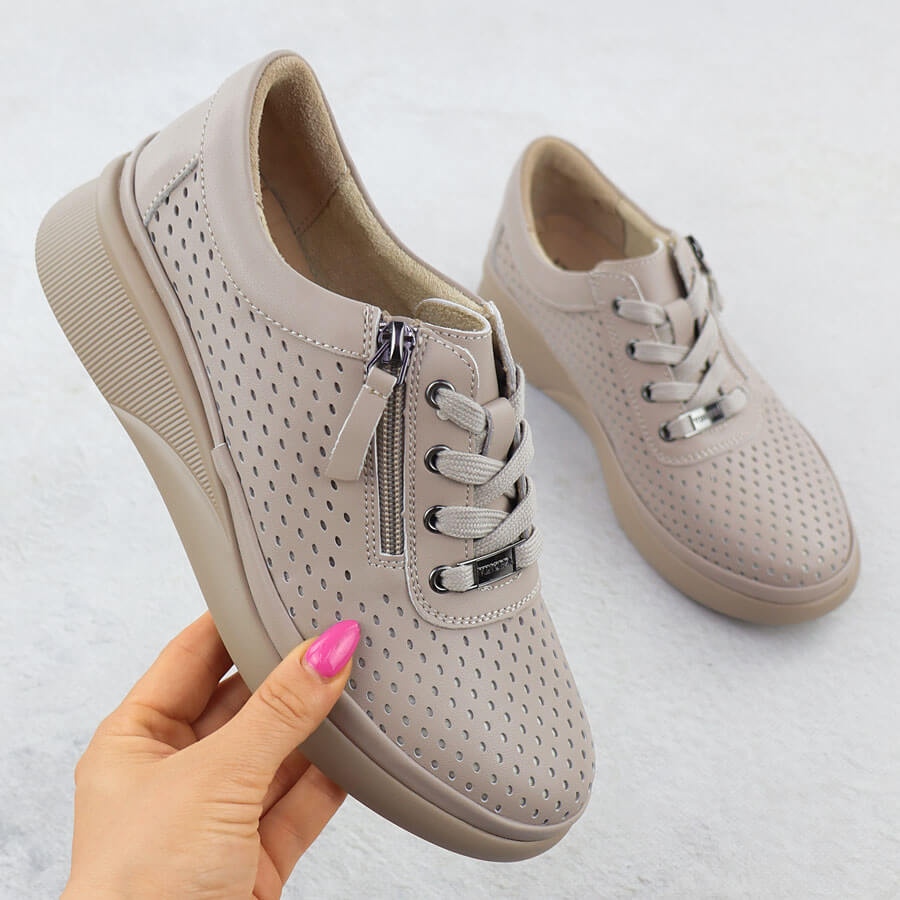 Dank des sanften Ledereinsatzes bieten die Schuhe auch während des langen Gebrauchs Komfort, was sie zur perfekten Wahl für Frühlings- und Herbsttage macht. Das perforierte Obermaterial verleiht ihnen Leichtigkeit und erfrischenden Charakter, die perfekt zu verschiedenen Stylisationen passt - sowohl lässig als auch eleganter.