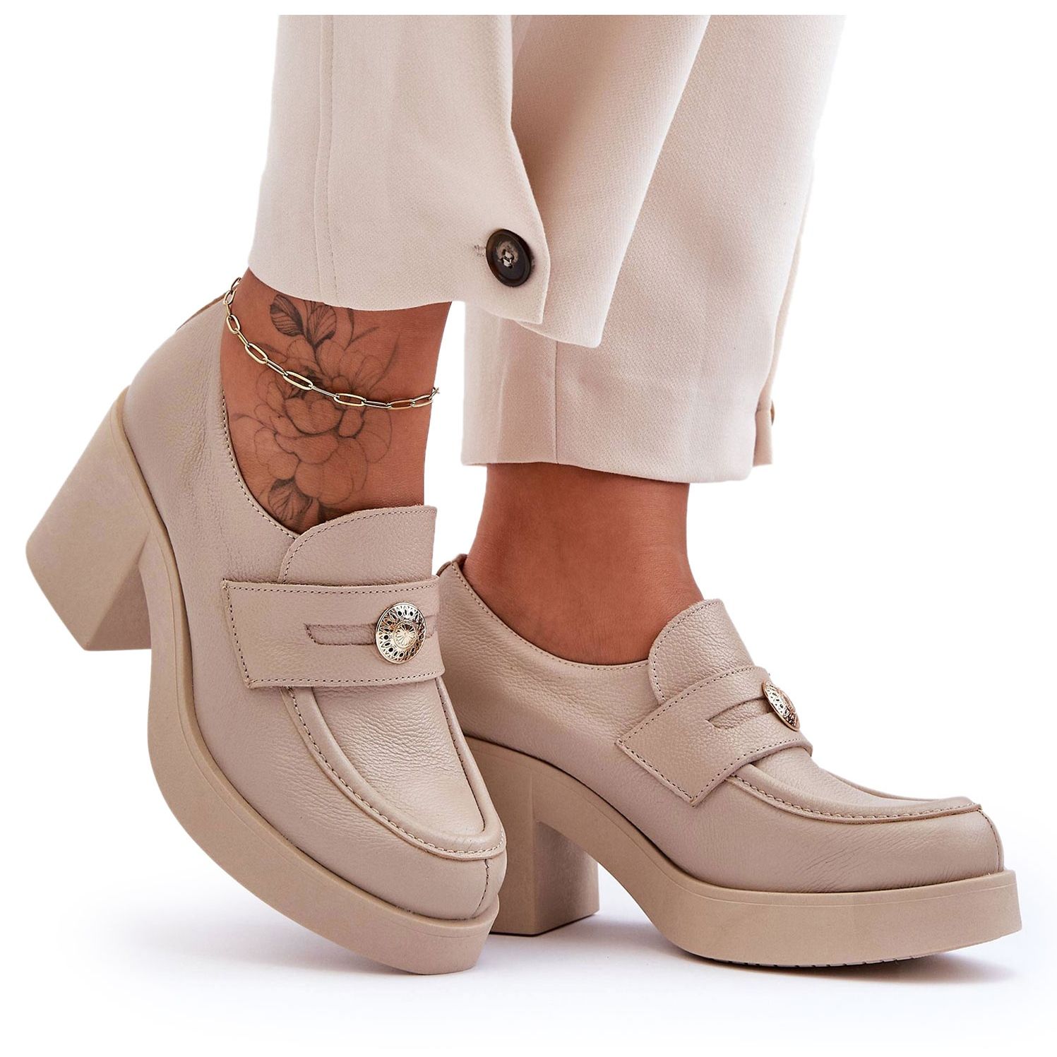 Beige Schuhe Lemar Dunadia ist ein universelles Modell für Frauen, die Klassiker, Komfort und stabile Ferse schätzen. Wenn Sie nach eleganten Lederschuhen für die Herbst- und Wintersaison suchen, die es wert ist, sie auszuwählen.