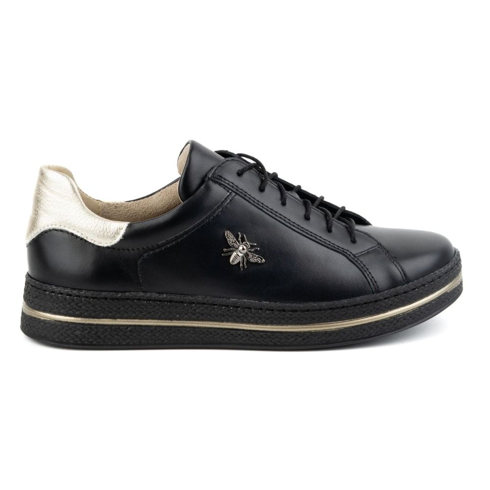 Olivier Frauenschuhe Leder -Sneakers Style 1190 in Black ist eine gute Wahl für jede moderne Frau, die Komfort mit elegantem Stil kombinieren möchte. Diese einzigartigen Turnschuhe zeichnen sich durch einen subtilen, zarten Glanz eines goldenen Flecks an der Seite und einer goldenen Ferse aus, was ihnen einen etwas luxuriösen Charakter verleiht.