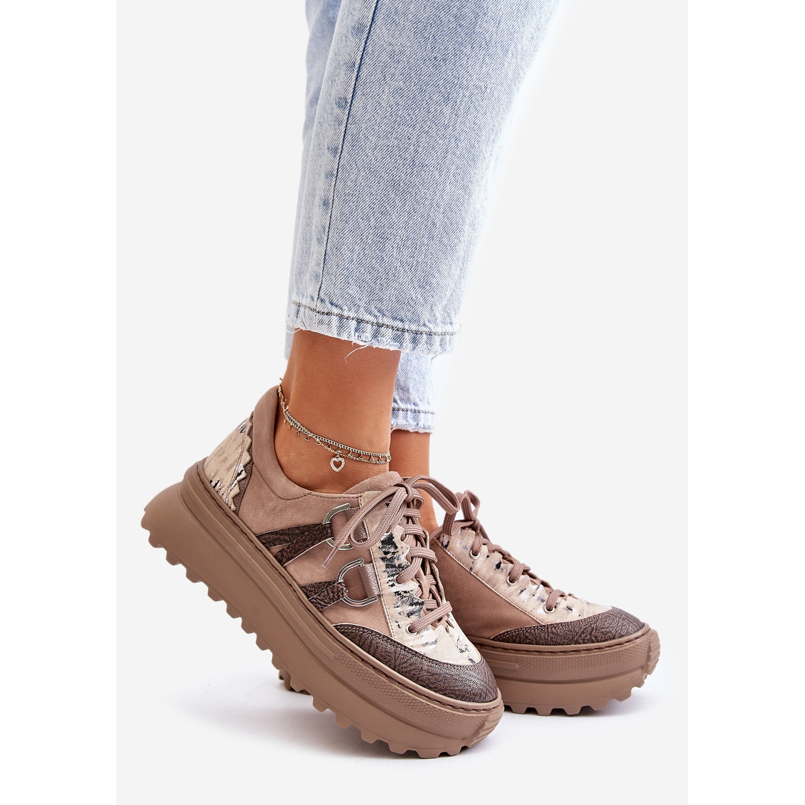Maciejka Damen-Ledersneaker auf der Plattform Maciejka 06562-10 Dunkelbeige