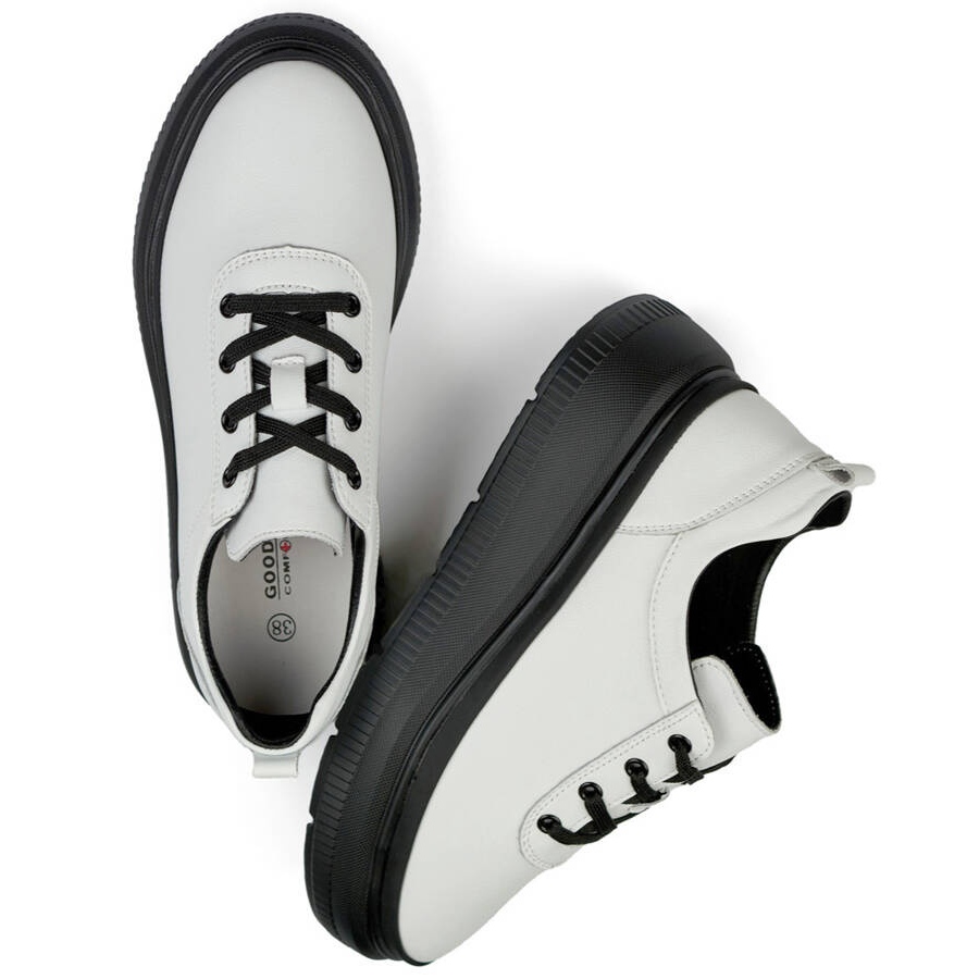 Details: Goodin Damen-Ledersneaker mit schwarzer Plateausohle, weiß GD-XF-120A-W