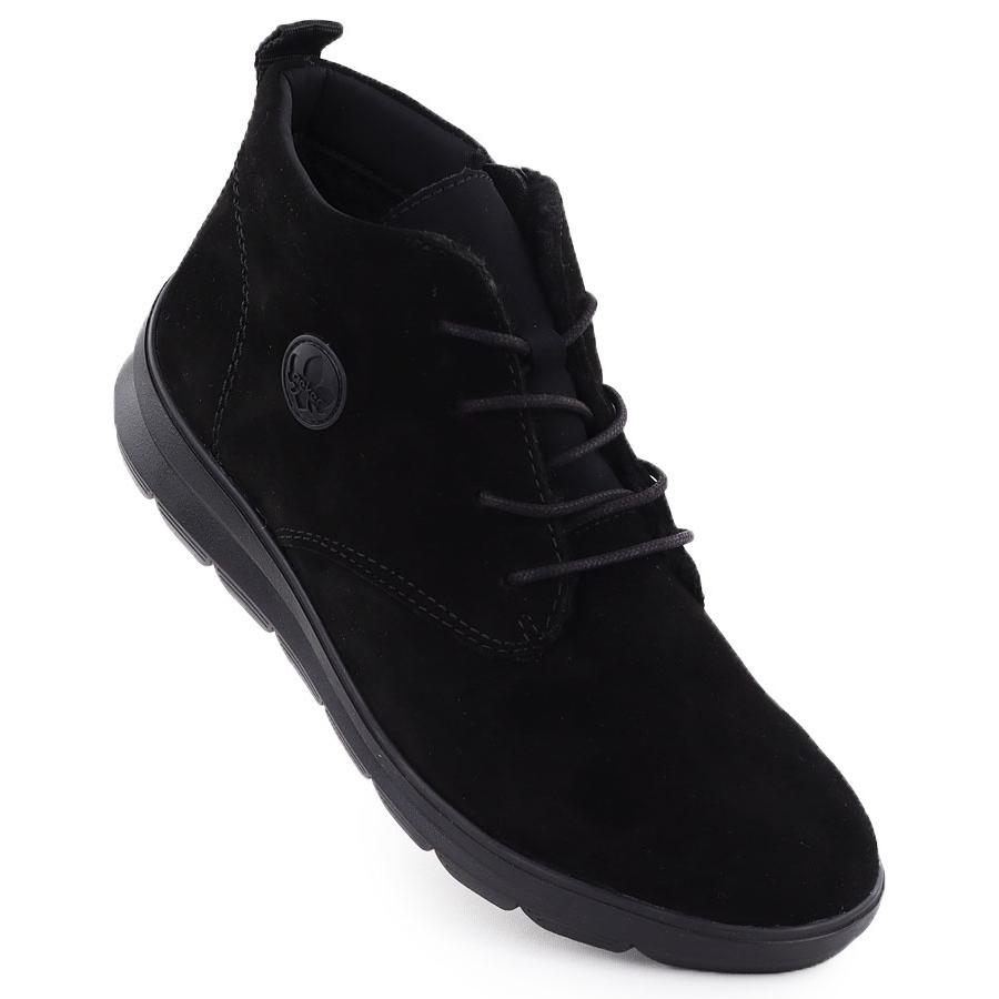 Ihr oberes oberes etwa 8 cm hoch durch den Knöchel und die Dicke der Sohle von 2 cm machen die Stiefel perfekt an den Fuß und sorgen für eine optimale Stabilität während des Gebrauchs. Rieker kümmerte sich auch um den Komfort des Tragens und die Ausrüstung des Z0022-00-Modells mit einem Schaffellfutter und einem Stoffeinsatz, das sich zusätzlich erwärmt und an kalten Tagen ein schönes Gefühl vermittelt.