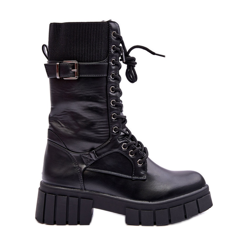 Die Stiefel verfügen über praktische Verschlüsse – ein seitlicher Reißverschluss ermöglicht ein schnelles An- und Ausziehen der Schuhe, während die klassische Schnürung eine perfekte Passform am Bein garantiert. Darüber hinaus erleichtert der elastische Einsatz die Anpassung der Schuhe an unterschiedliche Wadenumfänge und der Riemen mit Schnalle verleiht nicht nur Charakter, sondern ermöglicht auch die Anpassung der Schaftweite.