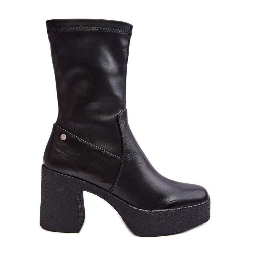 Diese Stiefel bestehen aus einer Kombination aus hochwertigem Natur- und Ökoleder und zeichnen sich durch eine solide Verarbeitung und ein klassisches Erscheinungsbild aus. Die dicke Sohle und der stangenförmige Absatz (8,5 cm hoch) sorgen für Stabilität und Tragekomfort den ganzen Tag. Darüber hinaus sorgt die Isolierung durch die Schuhdecke im Inneren des Schuhs dafür, dass Ihre Füße auch an kälteren Tagen warm bleiben.