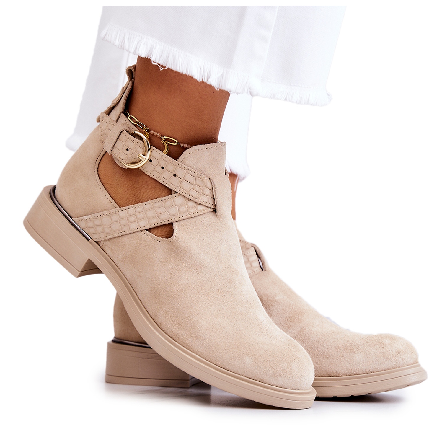 Details: PL5 Damen-Lederstiefeletten mit ausgeschnittenem hellbeigem Ramos