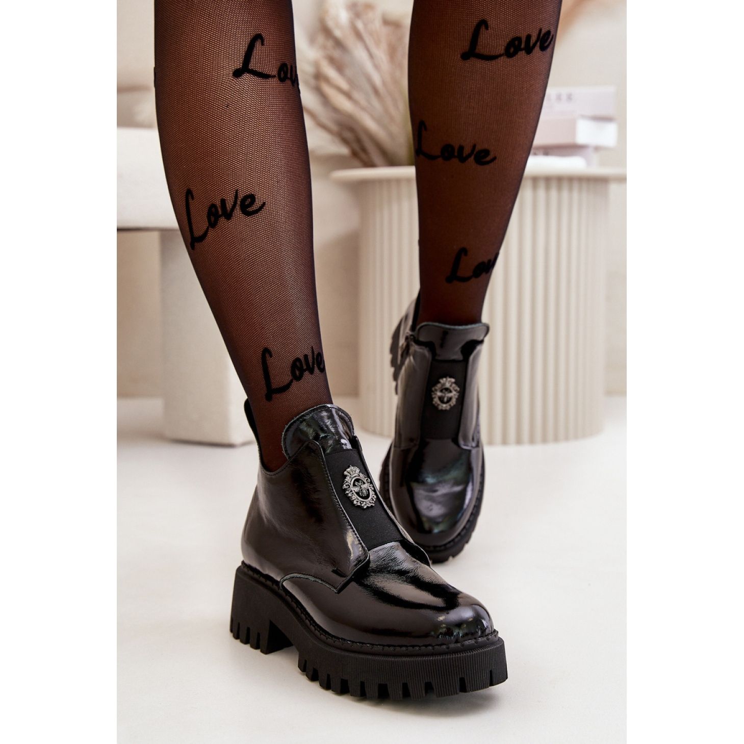 Inna marka Damen-Lederstiefeletten mit Zazoo Black-Dekoration schwarz