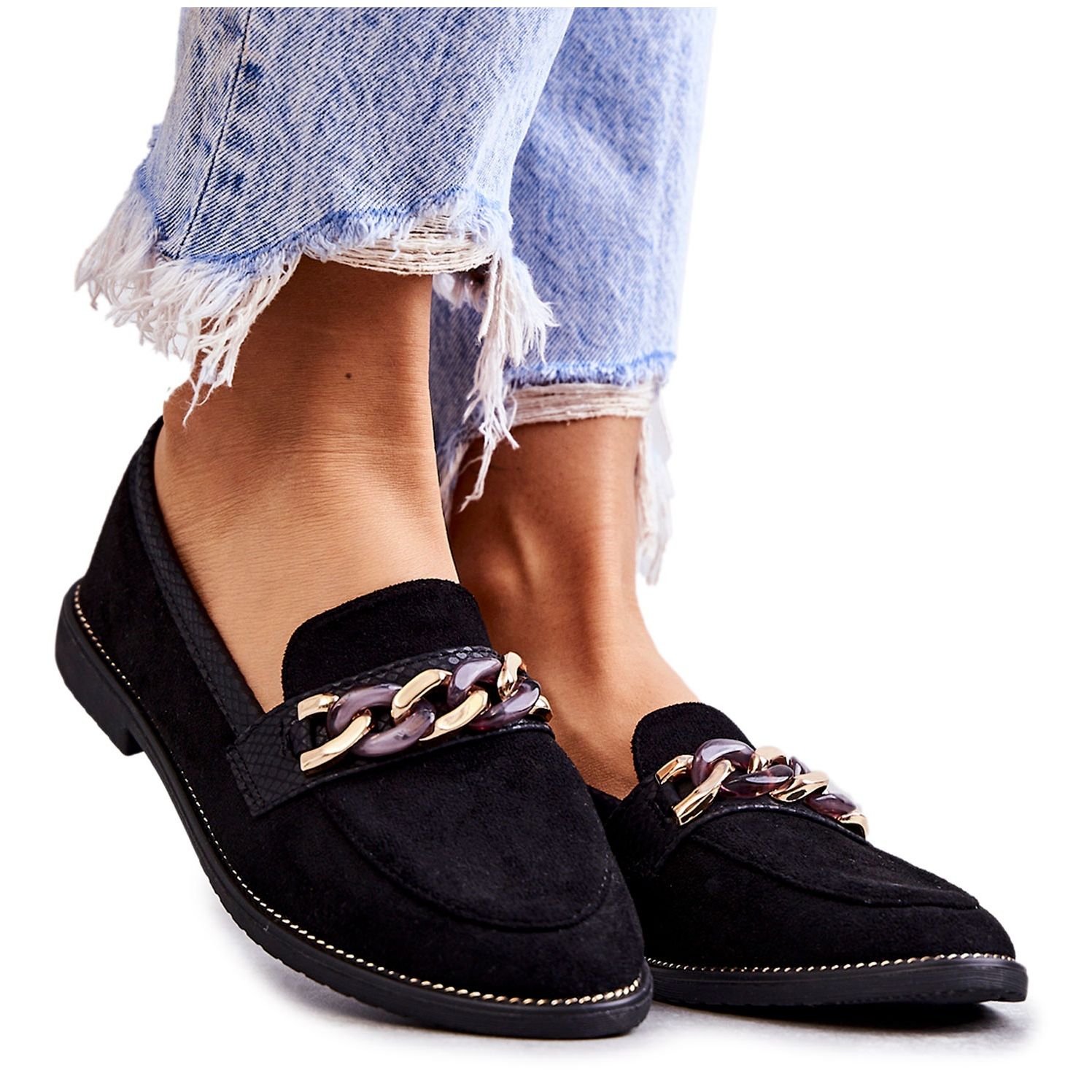 FB2 FB2 Damen-Loafer aus Wildleder mit einer Kette mit schwarzen Nägeln