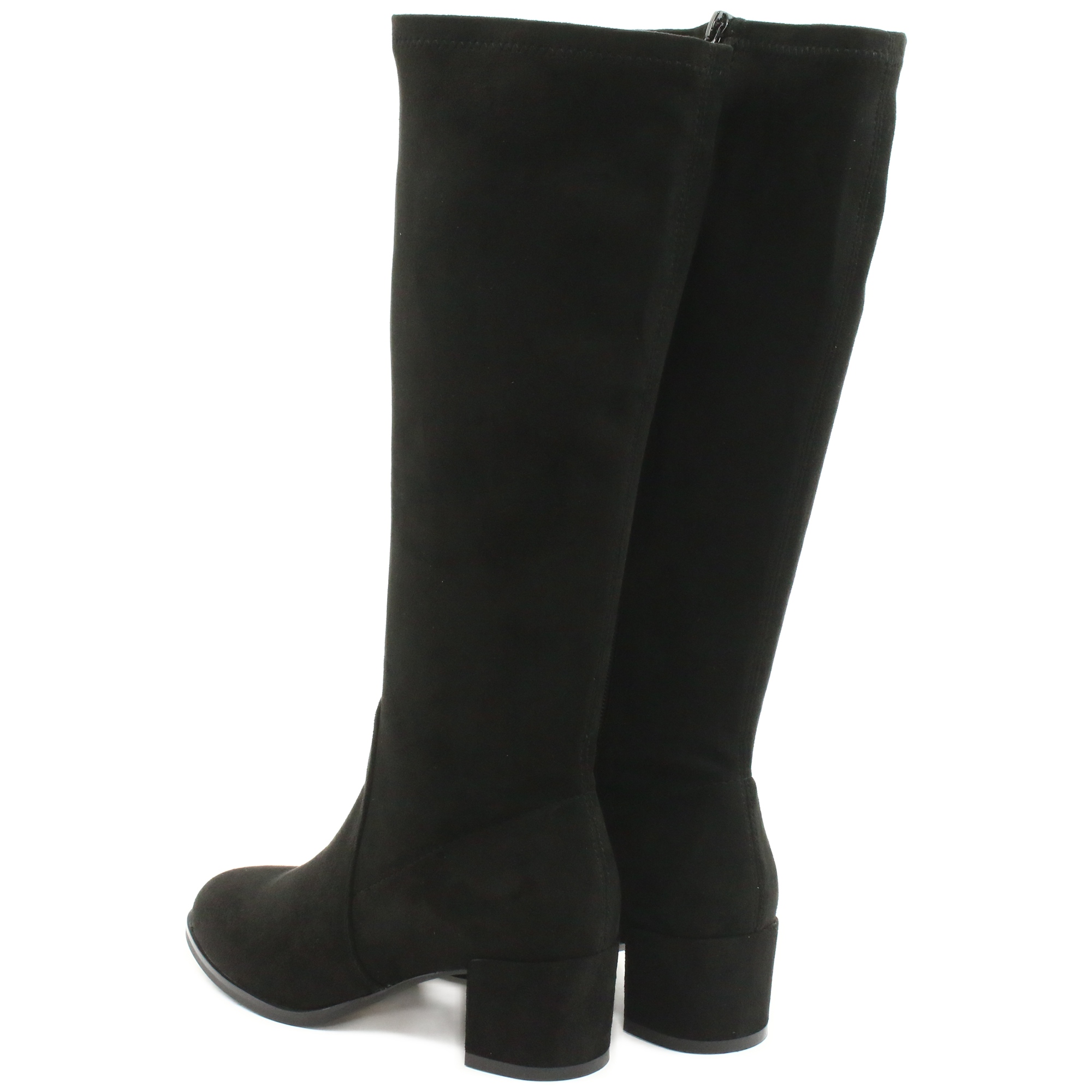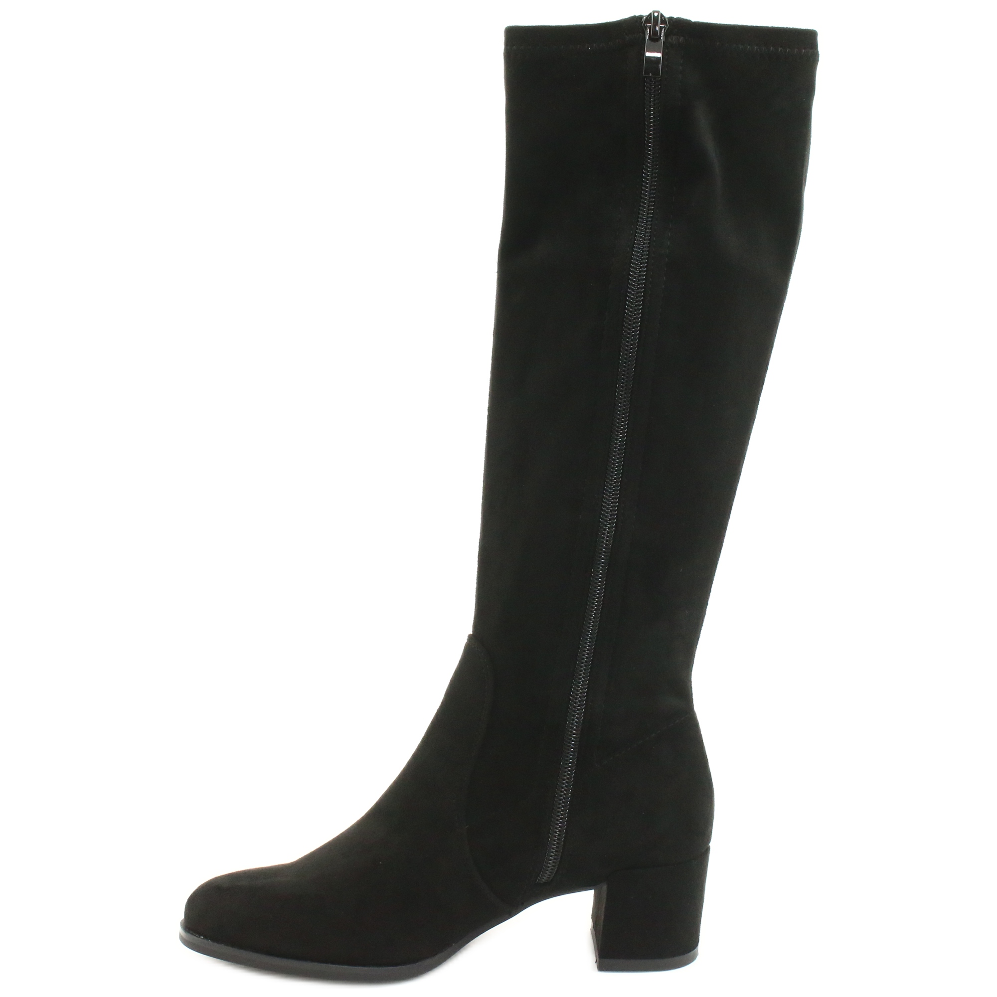 Die Stiefel bestehen aus elastischem Wildleder-Lycra, das eine perfekte Passform an den Beinen und Tragekomfort den ganzen Tag über gewährleistet. Ein zusätzlicher Reißverschluss erleichtert das An- und Ausziehen der Schuhe, was eine äußerst praktische Lösung für den Alltag darstellt.