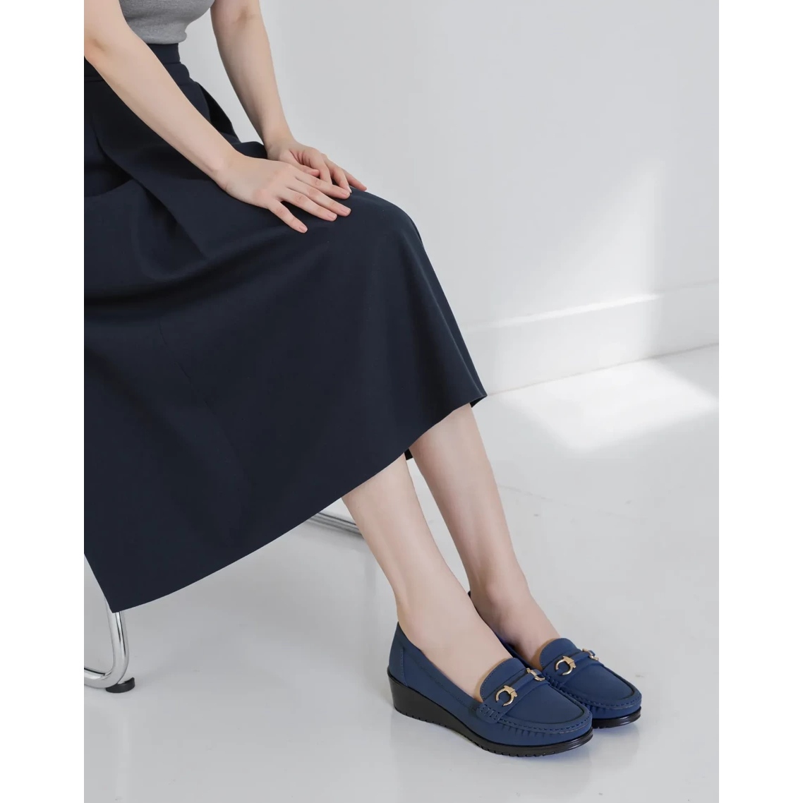 Das klassische Design mit einer zarten, goldenen Dekoration vorne verleiht ihnen einen einzigartigen Stil, was sie zur perfekten Wahl für verschiedene Gelegenheiten macht. Dank des erhöhten Keils sorgt Mirena Blue Slaters für Stabilität und Komfort und ermöglicht es Ihnen, den ganzen Tag über problemlos zu tragen, unabhängig davon, ob Sie zur Arbeit gehen, Freunde treffen oder für einen Wochenendspaziergang.