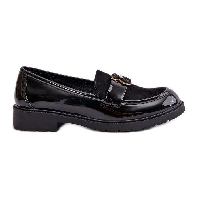 Details: Damen-Mokassins aus Lackleder mit Teddybär Schwarz S.Barski HY42-339A
