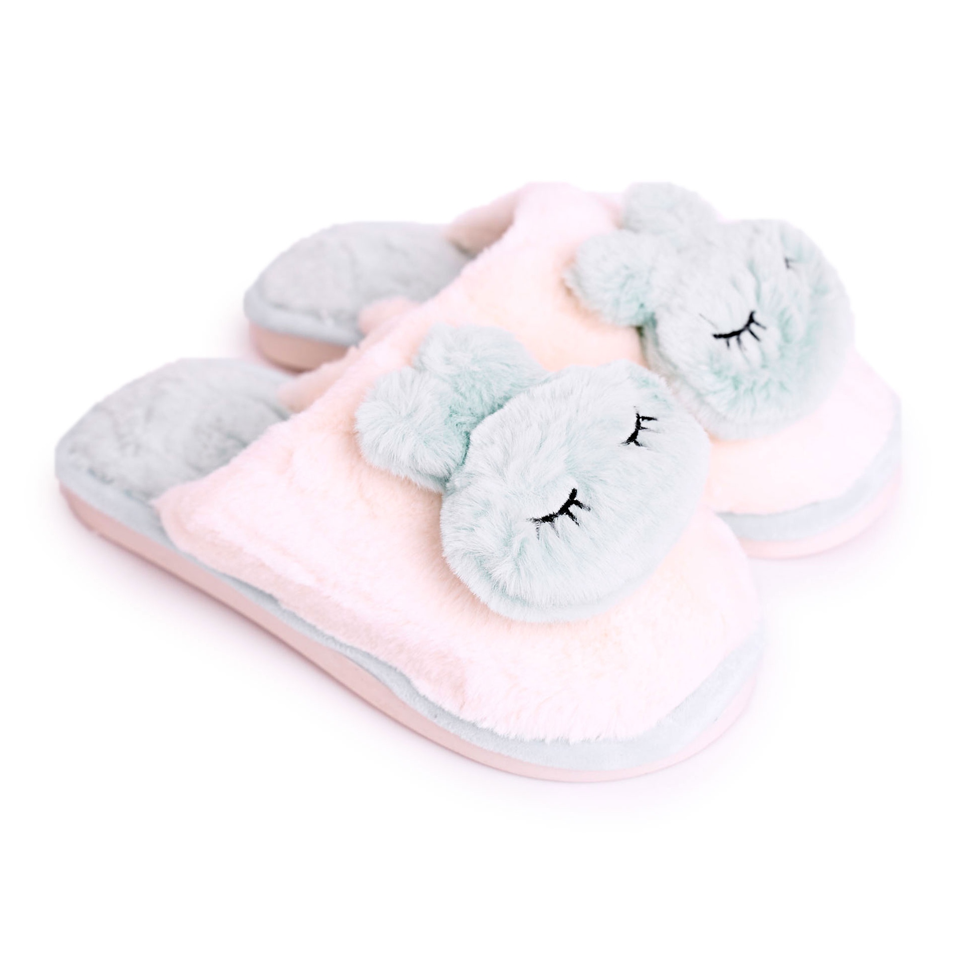 Inna marka Damen Pelzhausschuhe Hellgrün Kaninchen rosa