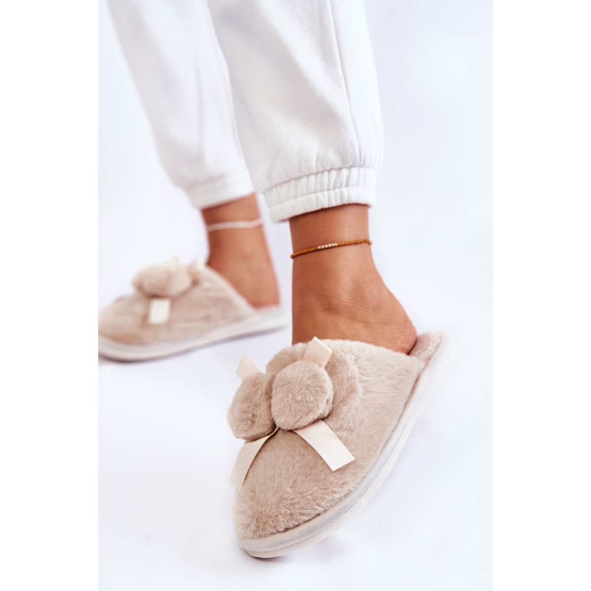 Details: BM Damen Pelzhausschuhe mit Bommeln Beige Castello