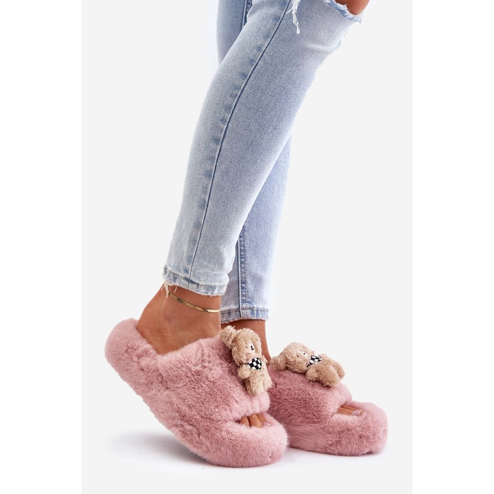 Inna marka Damen-Pelzhausschuhe mit Teddybär, rosa Rumänien