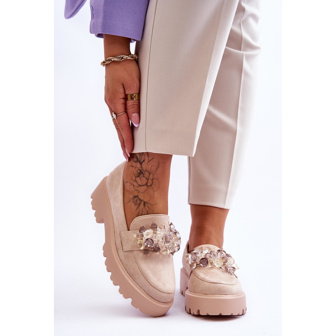 - Modell: Plateau-Mokassins mit Kristallen