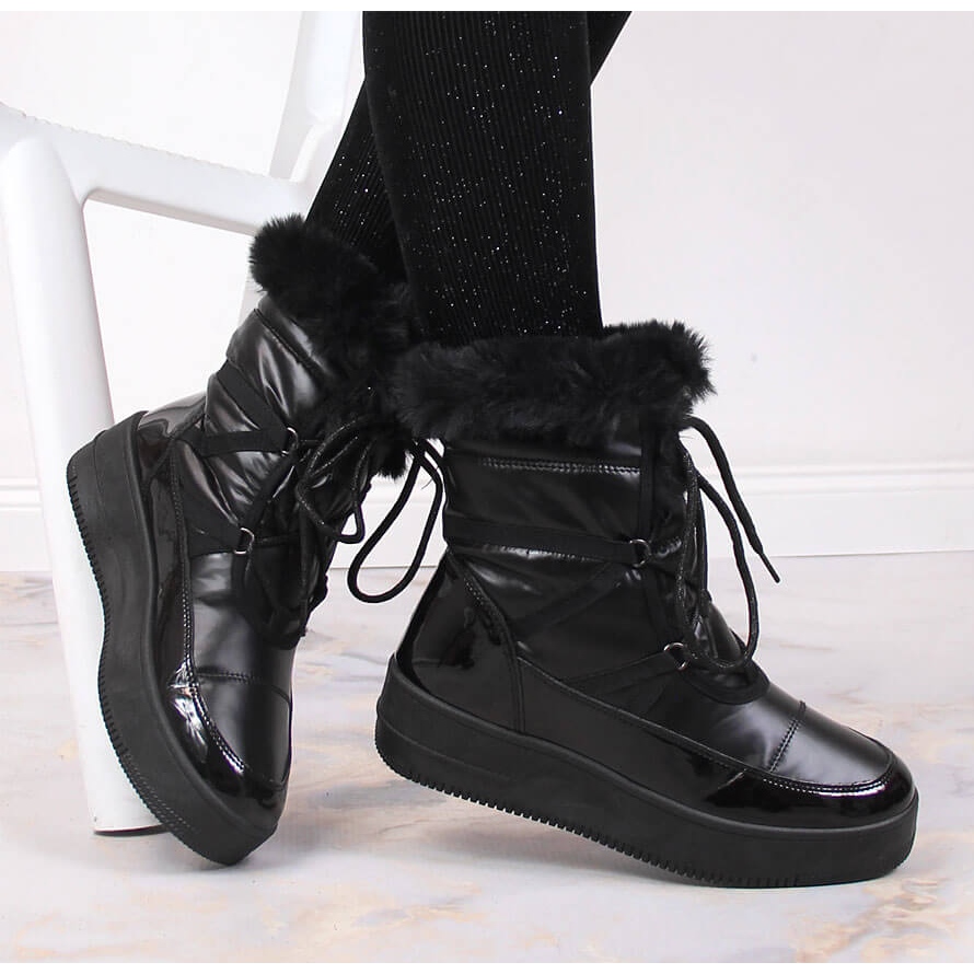 Details: Damen-Plateau-Schneestiefel mit Fell schwarz NEWS