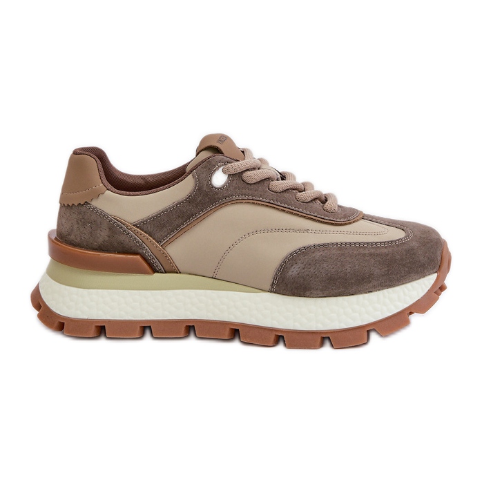 Diese Beige -Turnschuhe mit einer Höhe des oberen 6 cm und einer hohen Plattform von 3,5 cm werden eine perfekte Ergänzung für Sport und elegantere Kleidung. Mit dem Face -up -Befestigungselement können Sie die Schuhe an die individuelle Fußabschnitte anpassen, was einen noch größeren Tragenkomfort gewährleistet.