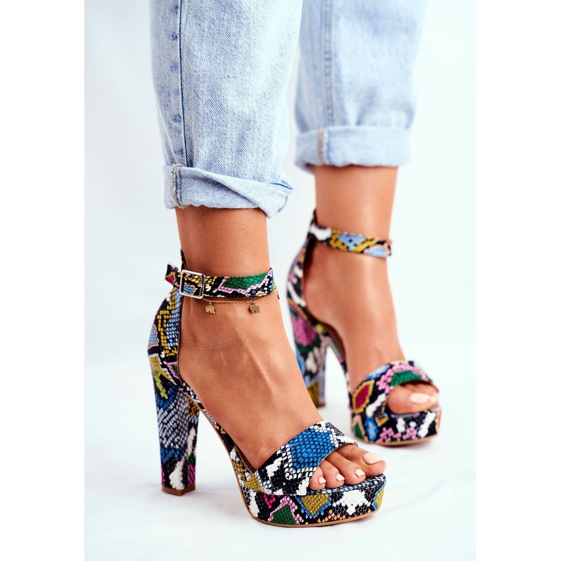 SEA SEA Damen Sandalen auf einem hohen Absatz bunte Schlange Figaro mehrfarbig