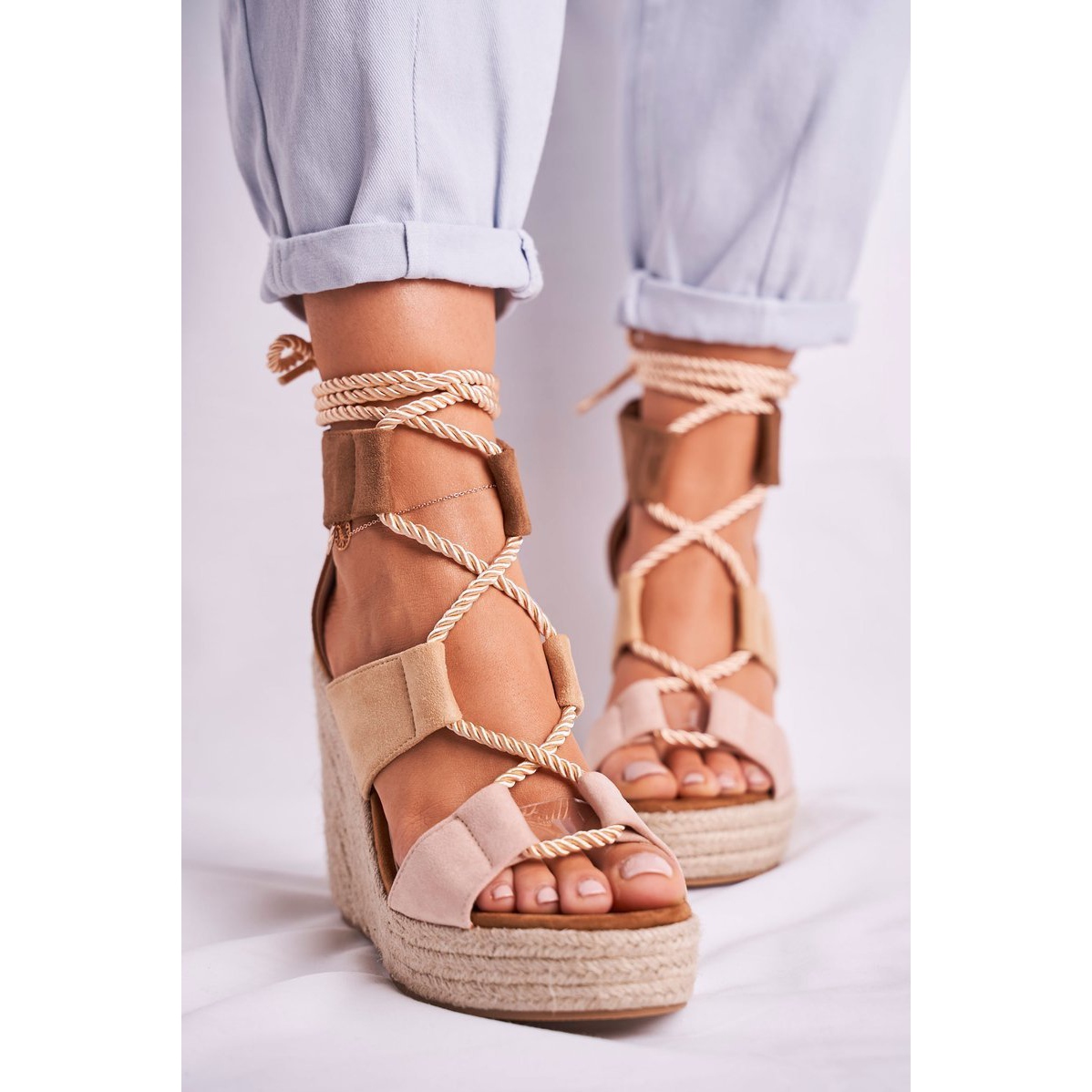 Details: Bellucci Damen Sandalen auf Keil Espadrilles Beige Beautiful One