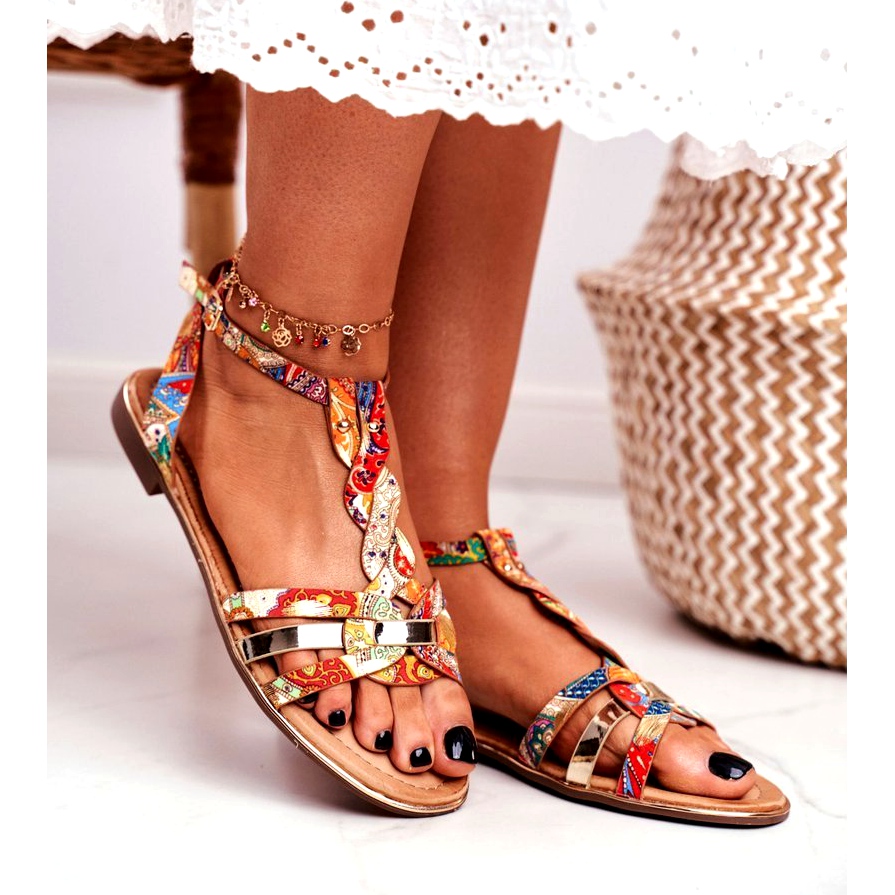 Details: PS1 Damen Sandalen Elegant Orange Oriental Brooke mehrfarbig golden
