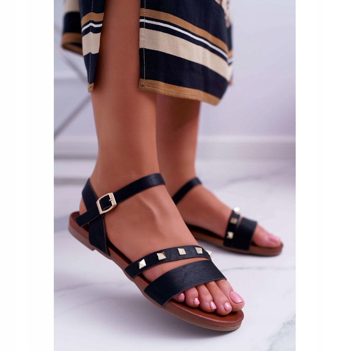 Details: S.Barski Damen Sandalen Flat Gold Studs Black Raven schwarz