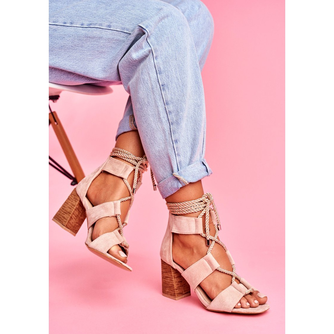 Details: SEA Damen Sandalen mit Absatz Gebunden Wildleder Beige Amore