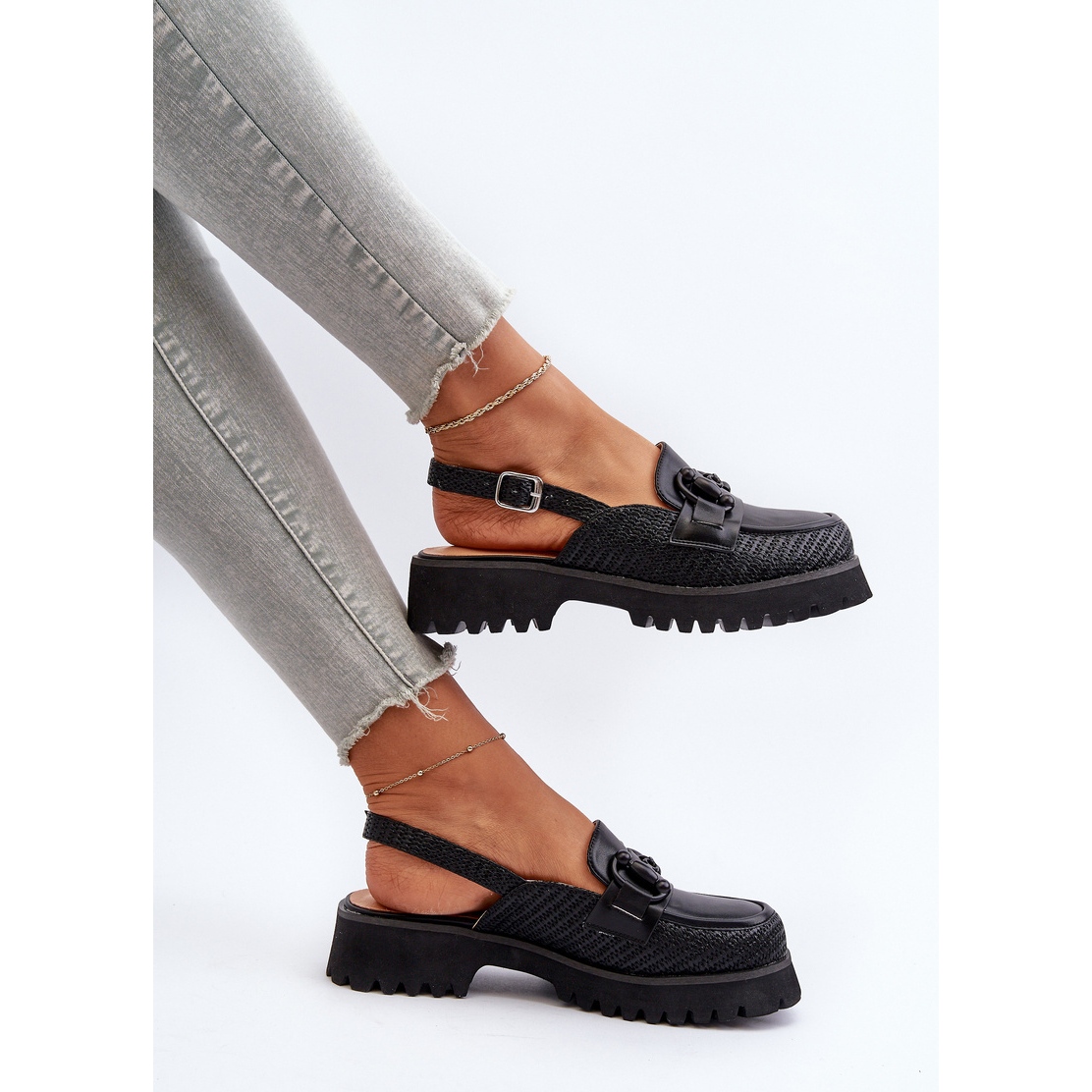 Der einstellbare Gurt auf der Rückseite mit der Schnalle ermöglicht die individuelle Passform am Fuß, was den Nutzungskomfort weiter erhöht. Das Innere der Schuhe, die mit natürlichem Leder fertiggestellt wurden, garantiert das Vergnügen des Tragens, und ihr minimalistischer Schnitt macht sie universell und passt zu verschiedenen Sommeroutfits.