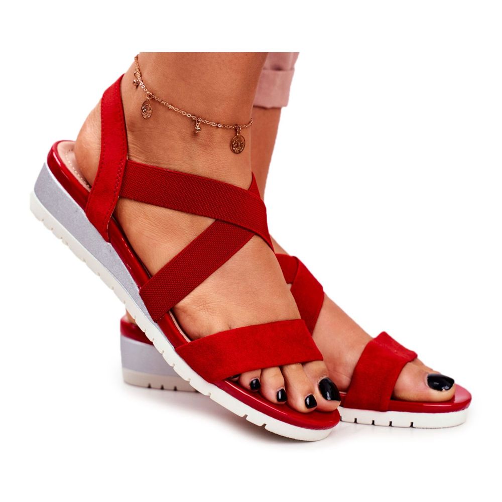 Entdecken Sie die einzigartigen PS1-Keilsandalen für Damen in einem intensiven Rot, die Ihre Sommergarderobe perfekt ergänzen! Das Modell Harper wurde für Frauen geschaffen, die Wert auf Komfort und Stil legen. Dank des Slip-On-Designs können Sie sie problemlos an Ihre Füße ziehen, und zwei breite Gummibänder, die sich am Knöchel kreuzen, sorgen für Stabilität und verhindern, dass die Schuhe verrutschen.