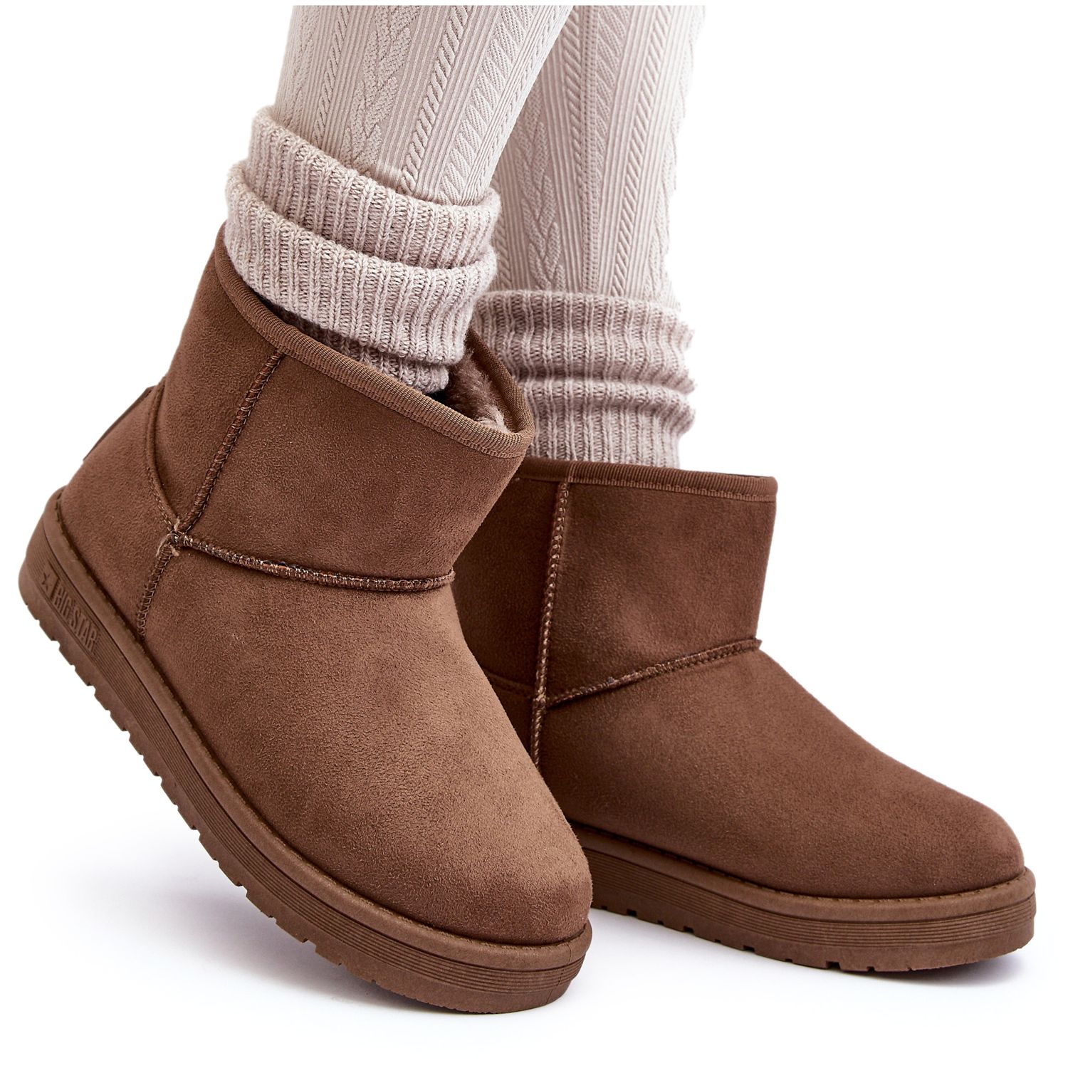 Damenschnee -Stiefel isoliert mit Big Star MM274161 Pelz - Hitze und Stil in einem. Ein klassischer Schnitt in einem modischen braunen Farbton aus hochwertigem ökologischem Wildleder -Leder. Perfekt für kühle, Wintertage - Weiches Fell im Innen- und Isoliereinsatz sorgen für Komfort und Isolierung vor der Kälte.