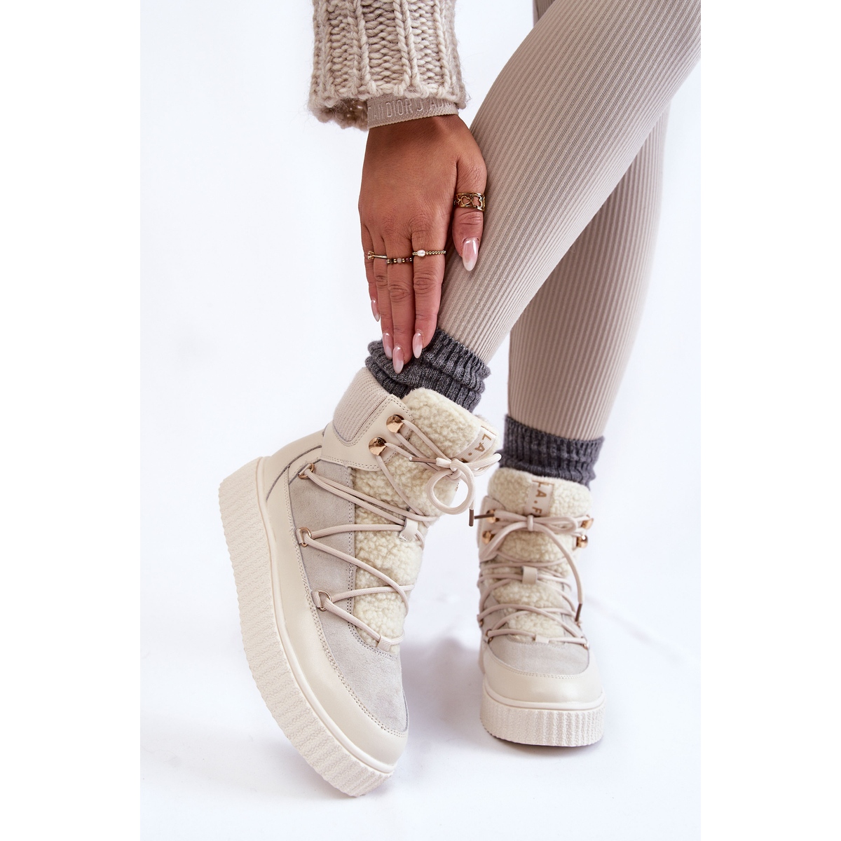 Diese stilvollen Stiefeletten wurden entwickelt, um Funktionalität und einen modischen Look zu vereinen. Diese Schneestiefel bestehen aus einer Kombination aus natürlichem Wildleder und hochwertigem ökologischem Leder und bieten Haltbarkeit und achten gleichzeitig auf den ästhetischen Aspekt. Durch die neutrale hellbeige Farbe passen die Schuhe perfekt zu den meisten Winterstilen.