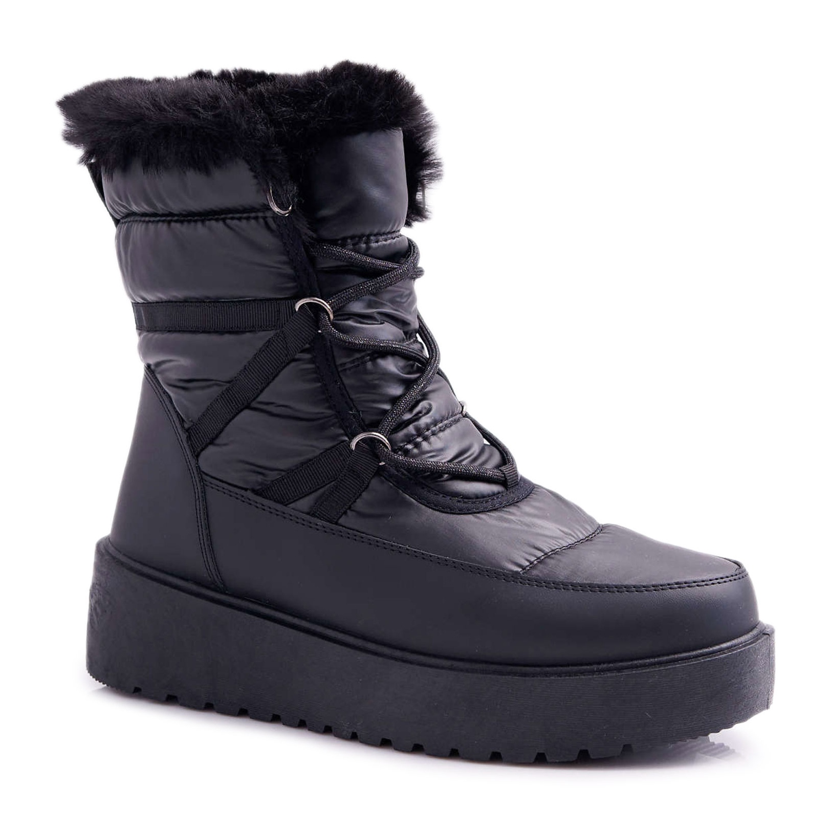 FRGIV FRGIV Damen Schneestiefel mit Fell Schwarz Calma