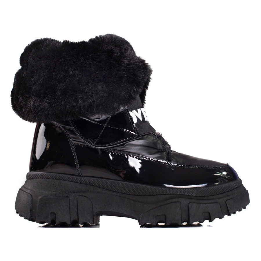 Klassische, bequeme und warme Schneestiefel in einer universellen schwarzen Farbe. Perfekt für täglich in der Wintersaison - sie kombinieren lässiges Design mit praktischen Lösungen: Isolierung, ein Weichpelzeinsatz und eine Nicht -Slip -Sohle mit einem Profil.