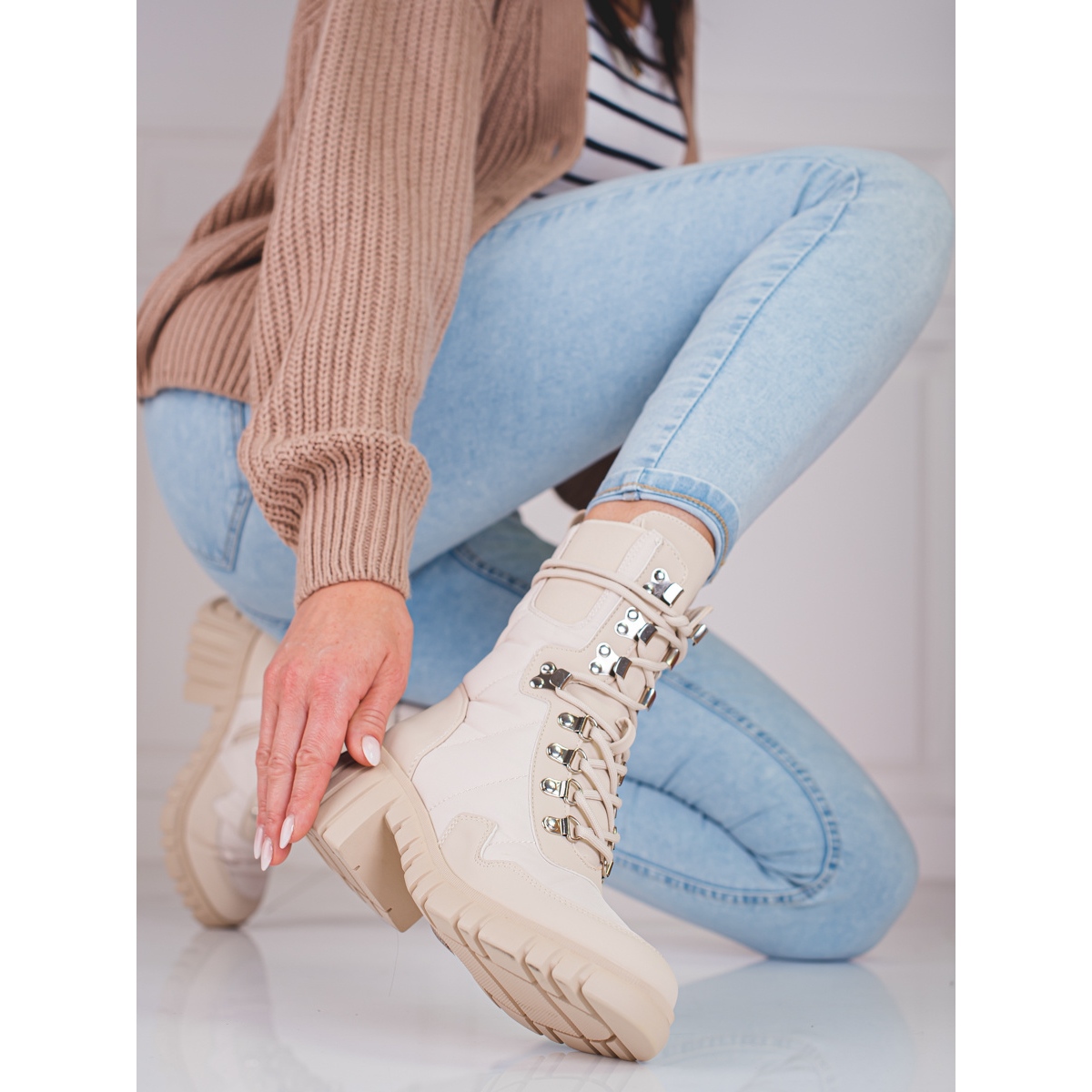 Dabei handelt es sich um beige Damen-Schnürstiefeletten auf Plateau von SHELOVET, die eine perfekte Wahl für Herbst und Winter sind. Diese stilvollen Stiefeletten vereinen Komfort und modisches Design und passen perfekt zum lässigen Stil.
