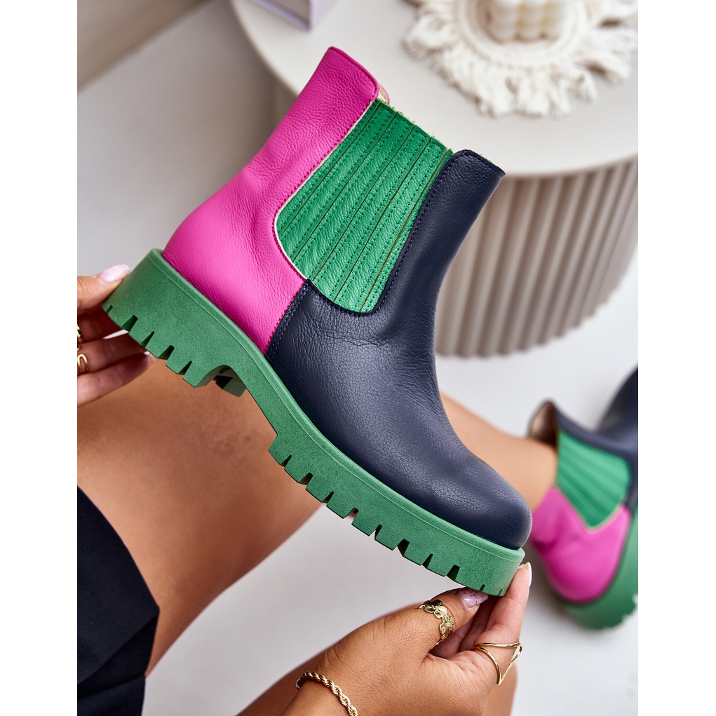 Dank der flexiblen Einsätze an den Seiten ist das Anziehen und Entfernen der Schuhe schnell und einfach, und die abgerundete Nase verleiht den ganzen Charme. Das Innere der Stiefel wurde mit natürliches Leder gepolstert, was das Vergnügen des Gebrauchs und der Fürsorge für die Gesundheit der Füße gewährleistet.