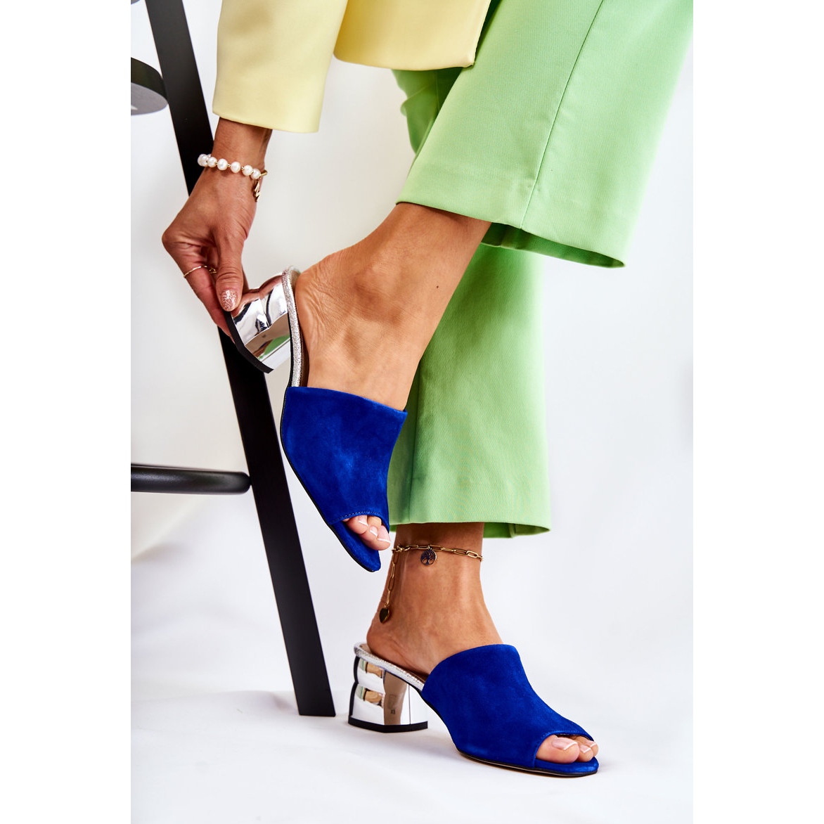 Details: PA2 Damen-Slipper aus Wildleder mit Absatz Marineblau Perry navy blau silber-
