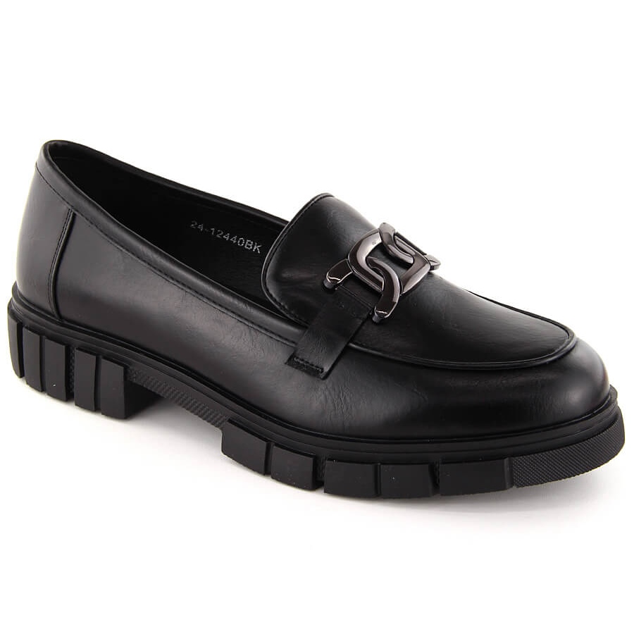 Moccasins Damenschuhe mit einer Kette Black Potocki 12440 ist ein eleganter Vorschlag, der sicherlich Gelegenheitsliebhaber ansprechen wird. Sie bestehen aus hochwertigem ökologischem Leder und garantieren nicht nur das ästhetische Erscheinungsbild, sondern auch den Komfort des Tragens. Ausgestattet mit einem natürlichen Ledereinsatz ermöglichen sie den langfristigen Gebrauch ohne Unbehagen.