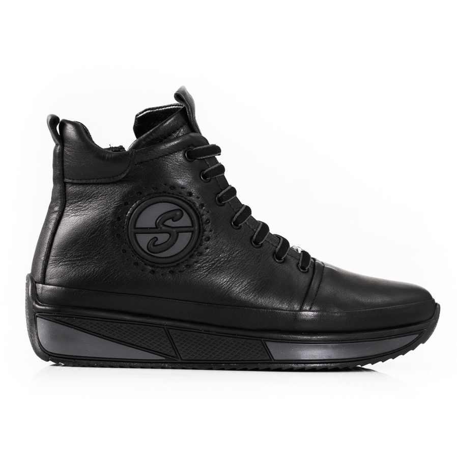 Elegante Damen-Plateau-Sneaker der renommierten Marke Shelovet sind die perfekte Wahl für Frauen, die Komfort mit modischem Stil verbinden möchten. Diese Schuhe bestehen aus hochwertigem Naturleder in klassischem Schwarz und sehen nicht nur großartig aus, sondern bieten auch hervorragende Haltbarkeit und Komfort.