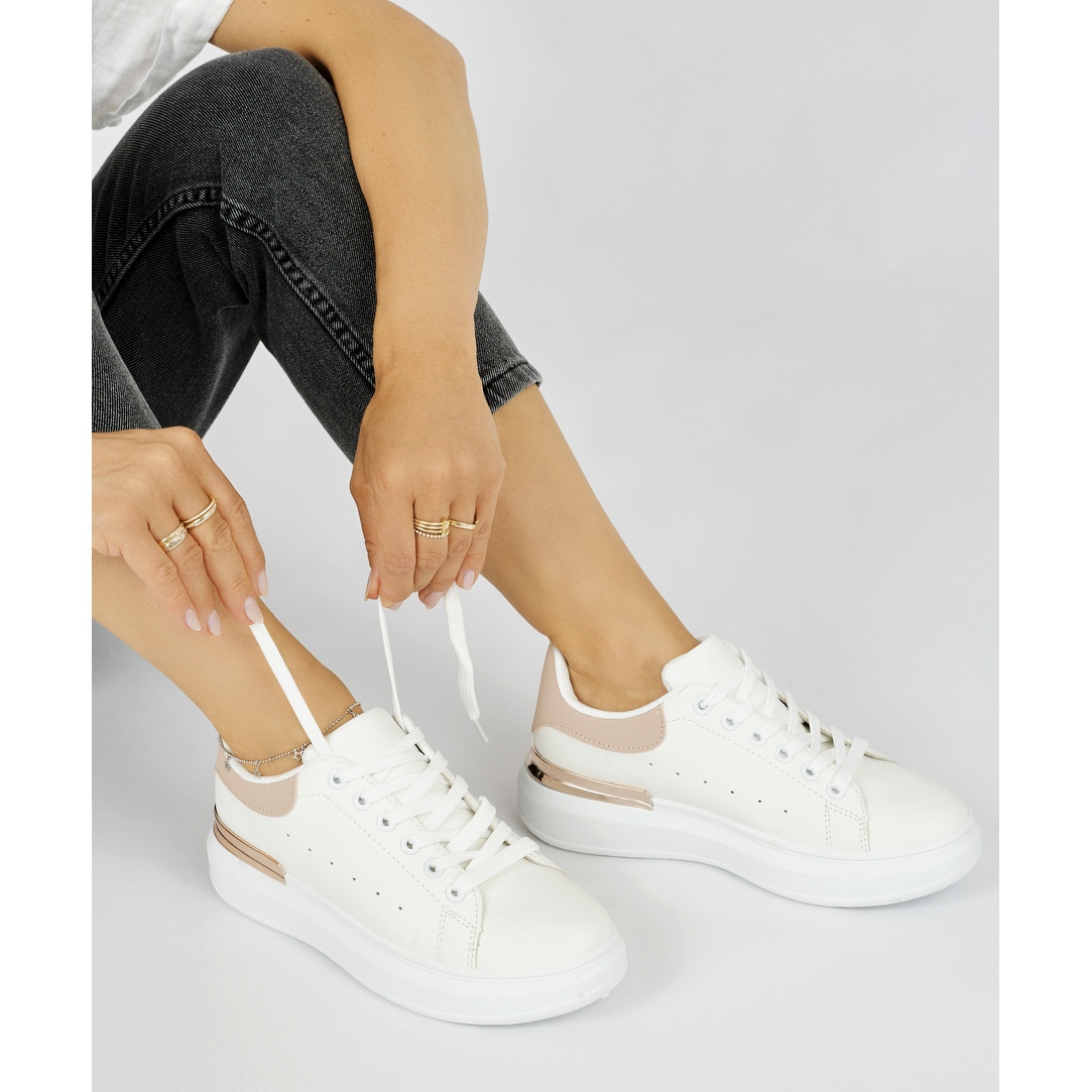 Inna marka Damen-Sneaker aus weißem Leder mit einem rosa Element