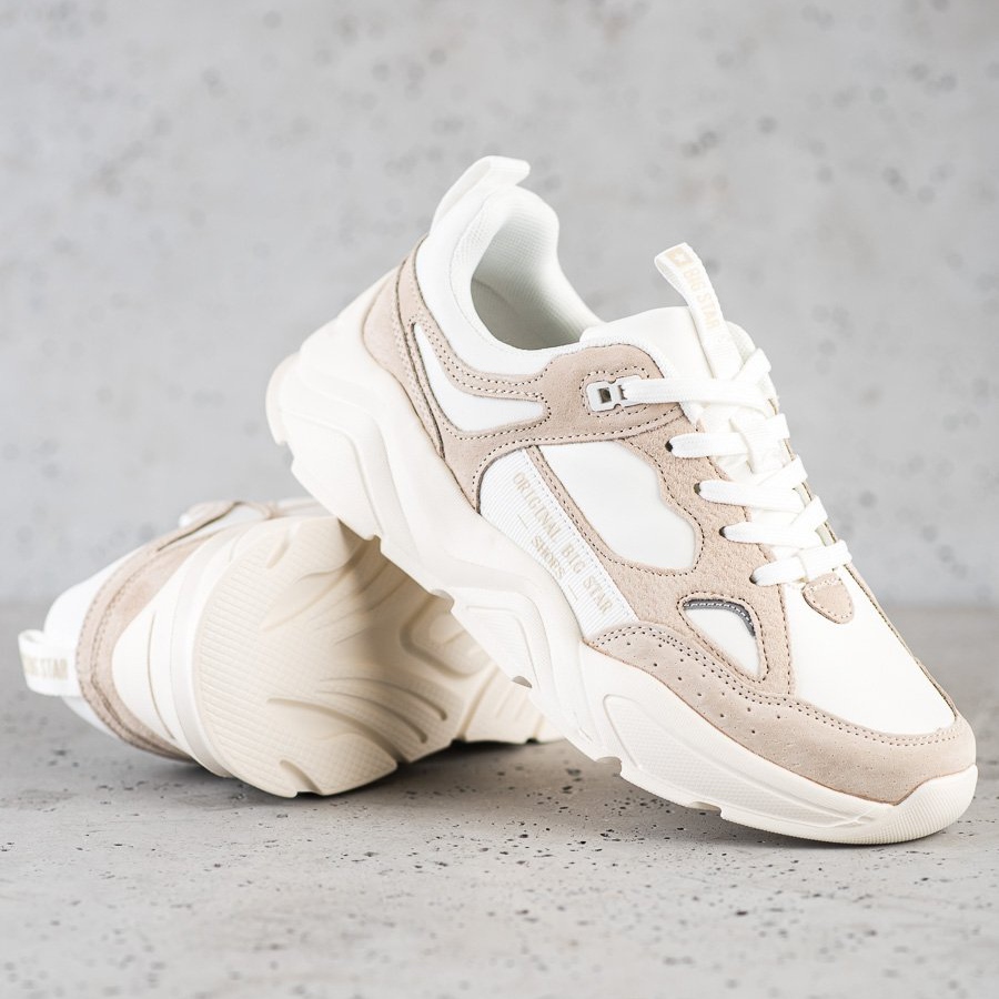 Die Damen-Sneaker Big Star GG274657 in Beige- und Brauntönen sind die perfekte Wahl für Frauen, die Wert auf Komfort und Stil im Alltag legen. Diese von der renommierten Marke Big Star entworfenen Sportschuhe vereinen Eleganz und Funktionalität und sind somit eine perfekte Ergänzung für jede Garderobe.