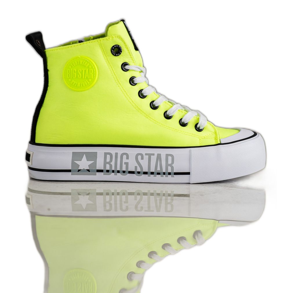 Die Damen-Sneaker Big Star II274015 in saftigem Gelb sind das perfekte Schuhwerk für Frühlings- und Sommertage. Sie bestehen sowohl außen als auch innen zu 100 % aus hochwertigen Textilmaterialien und sorgen für Komfort und Langlebigkeit. Ihr weicher, eingearbeiteter Absatz und die runde Spitze garantieren Tragekomfort und Bewegungsfreiheit.