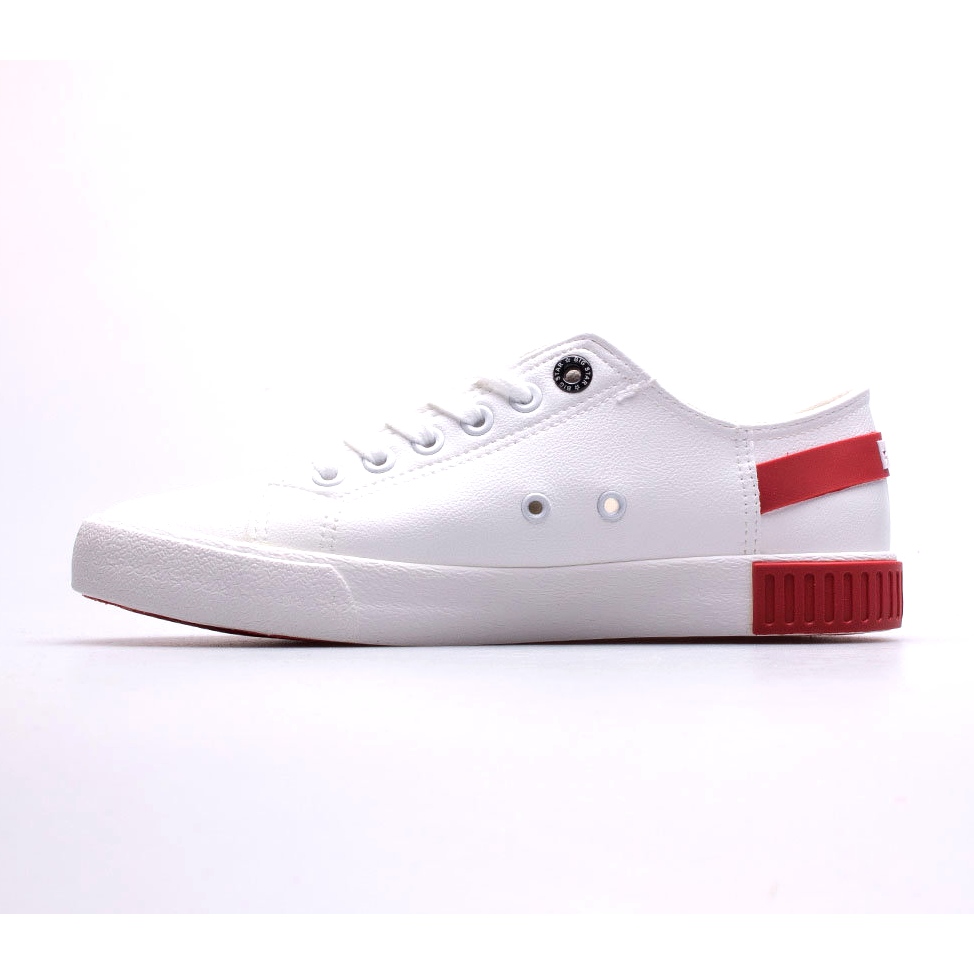 Das neue Modell der großen Star -Sneaker von Damen - klassisch, komfortabel und stilvoll. Hergestellt aus ökologischem Leder in universellem Weiß, mit einer charakteristischen roten Ferse mit dem Big Star der Inschrift, der ihnen einen modischen Akzent verleiht. Der weiche, materielle Einsatz bietet selbst bei längerem Abnutzung Komfort, und die klassische Schnürung ermöglicht es Ihnen, in den Fuß zu passen.