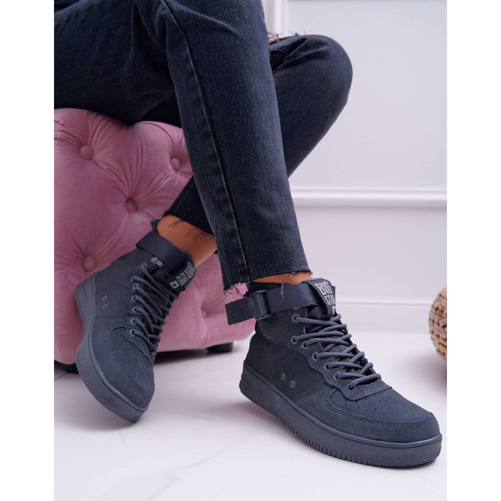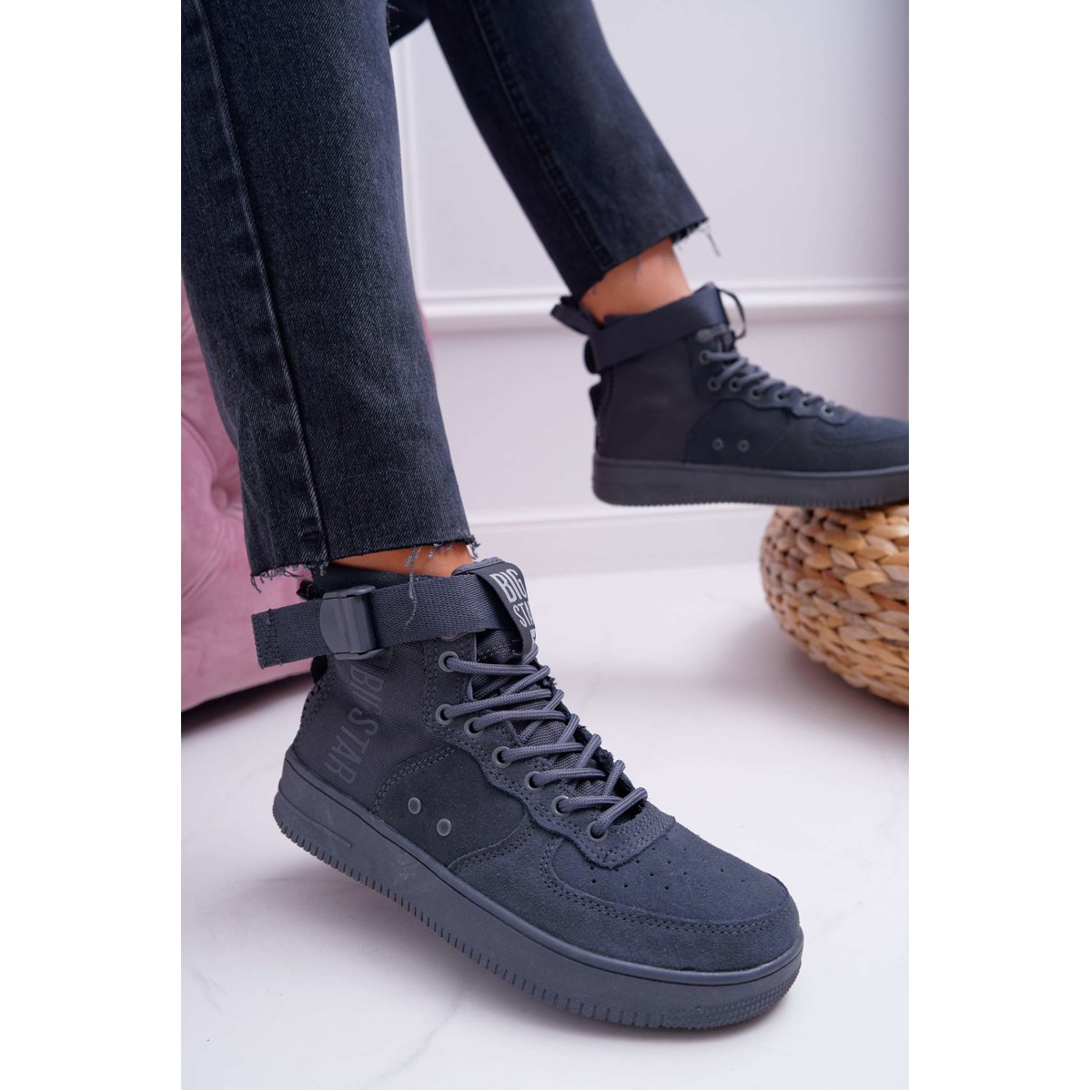 Damen-Sneakers Sneakers Grey Big Star EE274661 sind die perfekte Wahl für Frauen, die Wert auf eine Kombination aus Stil und Komfort legen. Gefertigt aus hochwertigem Naturveloursleder sorgen sie nicht nur für ein perfektes Aussehen, sondern auch für Langlebigkeit. Durch die graue Farbe sind sie äußerst universell einsetzbar und passen sich problemlos verschiedenen Stilrichtungen an.