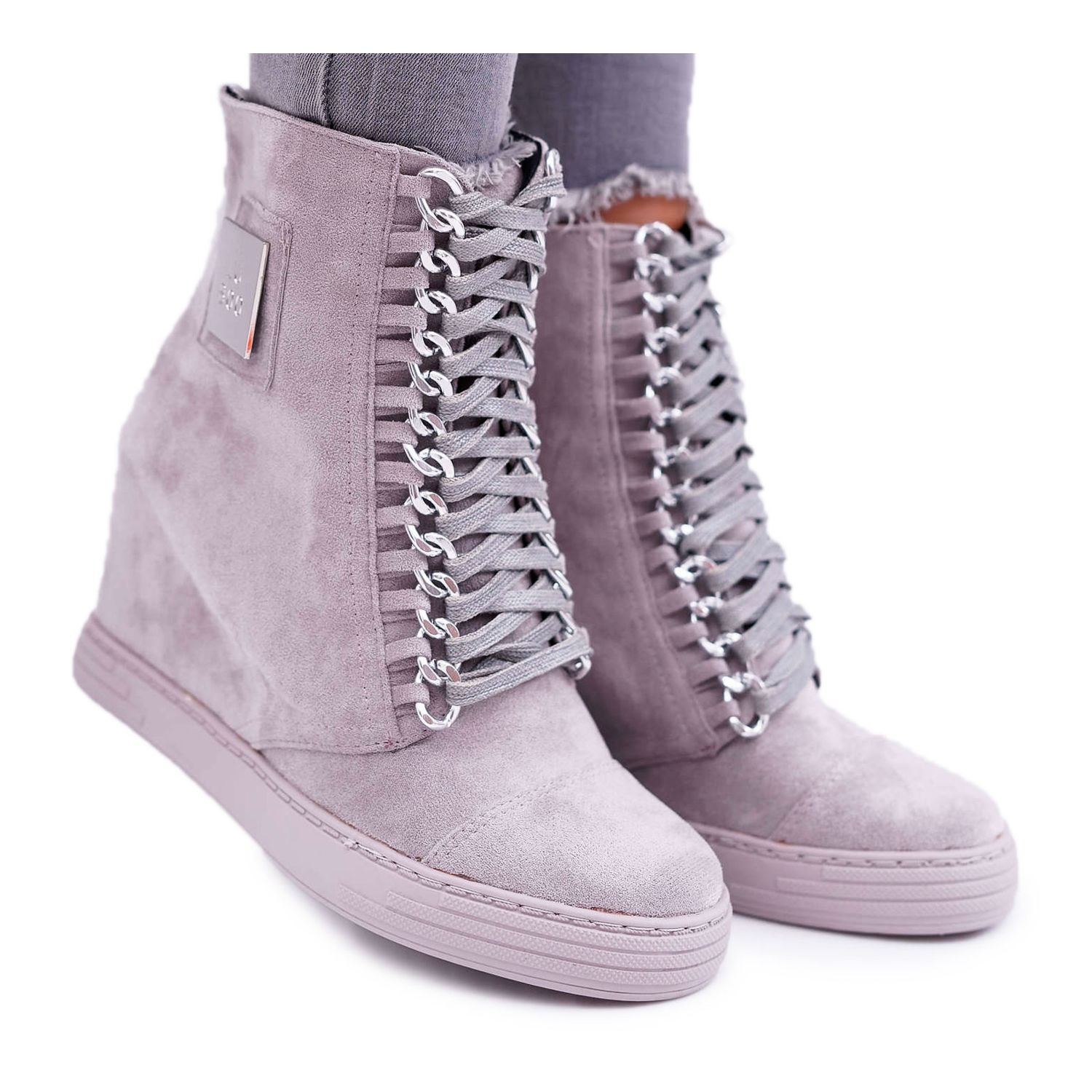 Die aus hochwertigem ökologischem Wildleder gefertigten Sneaker zeichnen sich nicht nur durch ihr ansprechendes Aussehen, sondern auch durch den Tragekomfort aus. Die runde Spitze und die zarte Keilhöhe (9 cm) ermöglichen ein ermüdungsfreies Tragen den ganzen Tag. Ein zusätzlicher Vorteil sind stylische Ketten und Strasssteine, die den Schuhen einen räuberischen Charakter verleihen.