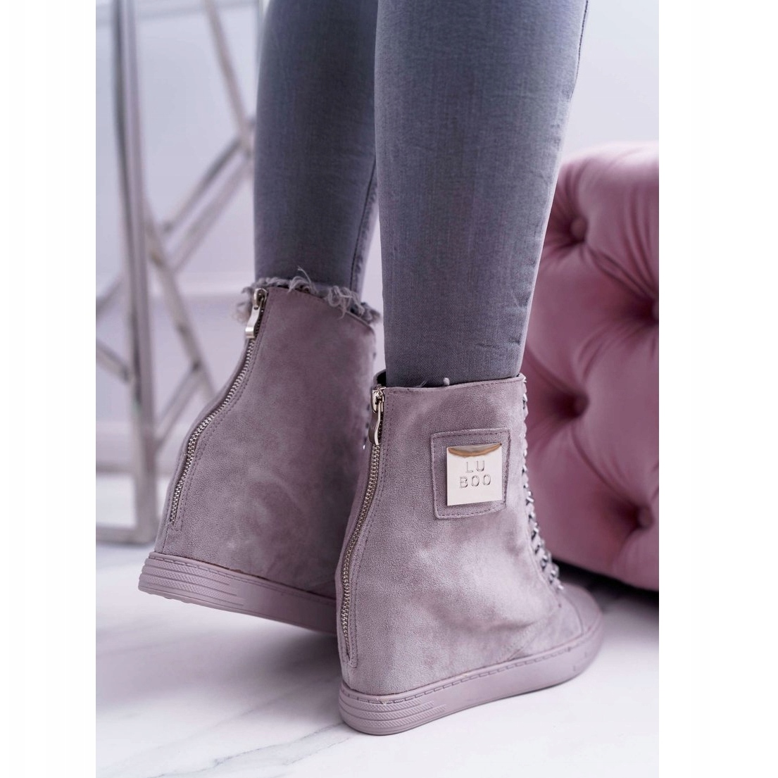 Damen-Sneakers Lu Boo mit Ketten aus Wildleder in Grau Monica sind die perfekte Wahl für jede modebewusste Frau. Diese einzigartigen Schuhe vereinen Eleganz und sportliche Leichtigkeit und sind somit die perfekte Ergänzung für eine Vielzahl von Stilrichtungen – von lässig bis formell.