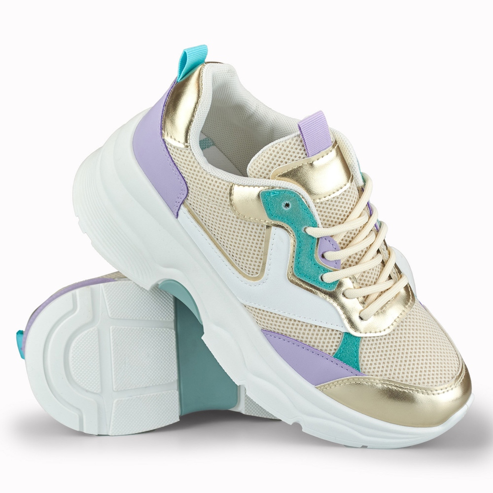 Geori Frauen -Sneaker mit goldenen Ergänzungen - Multi -Colored
