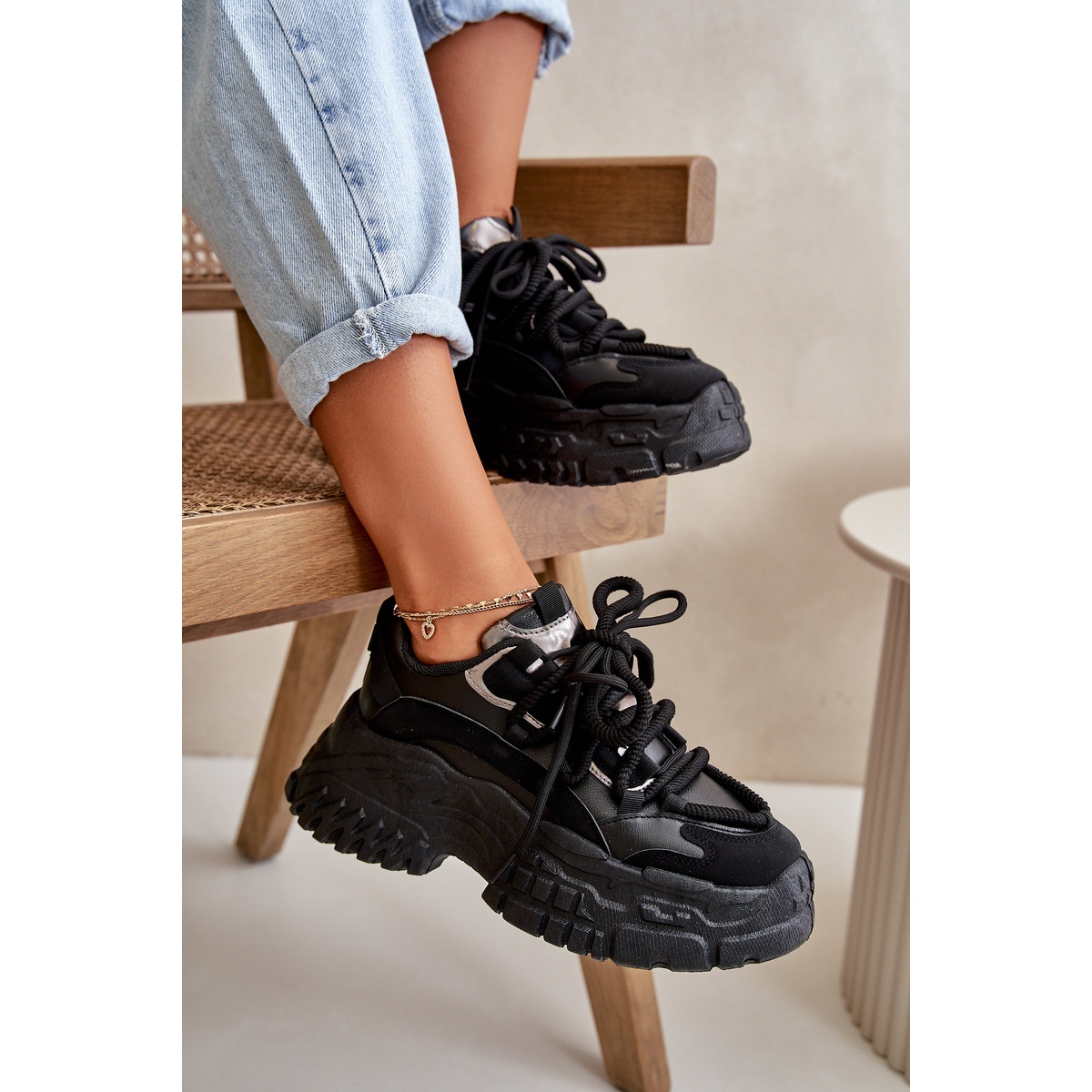 Details: Damen-Sneaker mit massiver Sohle, schwarzes Nevela
