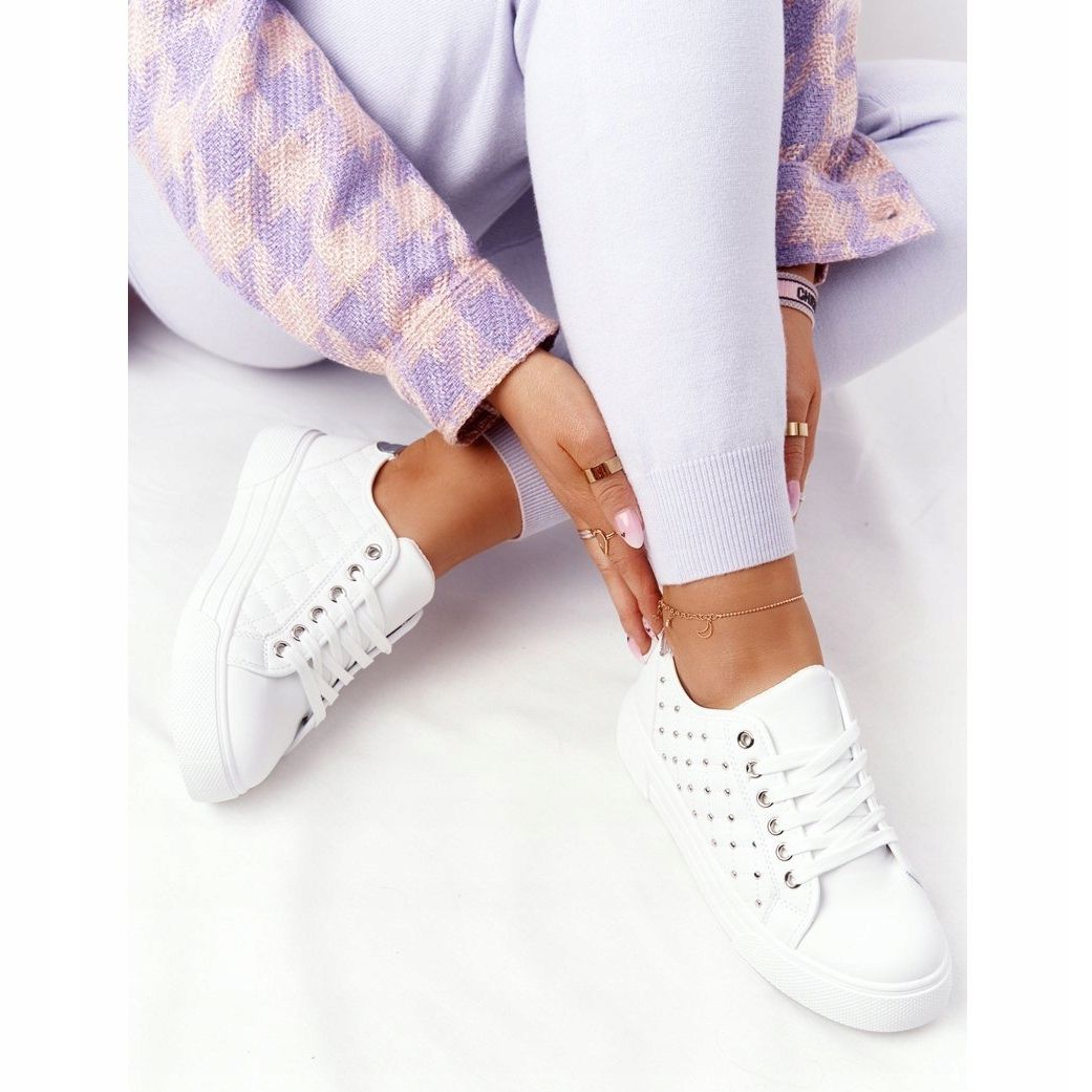 Diese Sportschuhe sind auf Komfort ausgelegt. Durch die runde Spitze und die niedrige Absatzhöhe (nur 3 cm) eignen sie sich perfekt für lange Spaziergänge und der Schnürverschluss garantiert eine perfekte Passform am Fuß. Zusätzliche Akzente in Form von Strasssteinen sorgen für Aufmerksamkeit und verleihen den Sneakern einen einzigartigen Charakter.