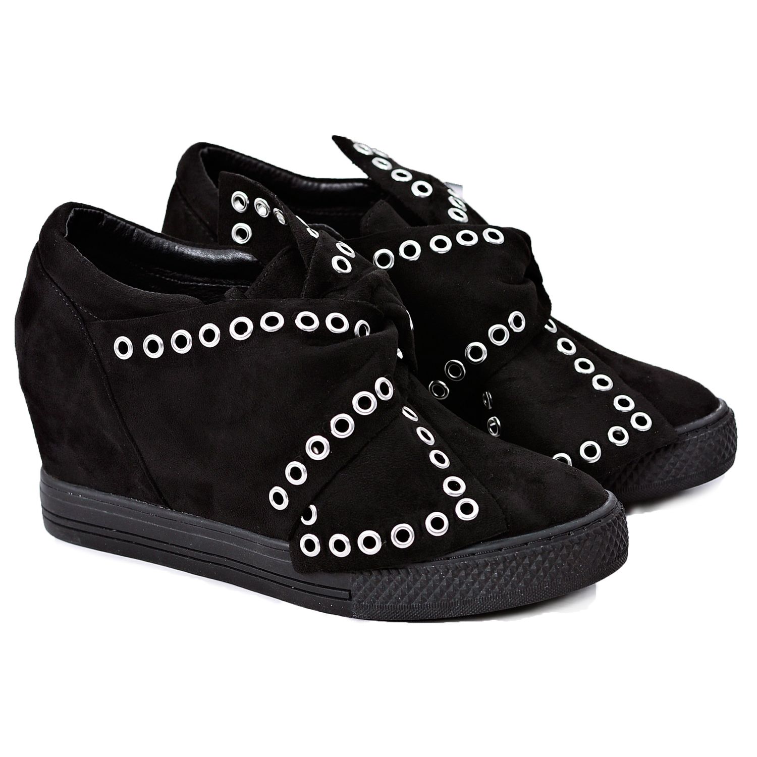 Einzigartige Verzierungen in Form einer Schleife mit Nieten ziehen die Blicke auf sich und verleihen dem Ganzen einen einzigartigen Charakter. Diese Sneaker eignen sich perfekt für verschiedene Stilrichtungen – sowohl lässig als auch eleganter. Sie können sie jeden Tag tragen, zur Arbeit oder beim Ausgehen mit Freunden.