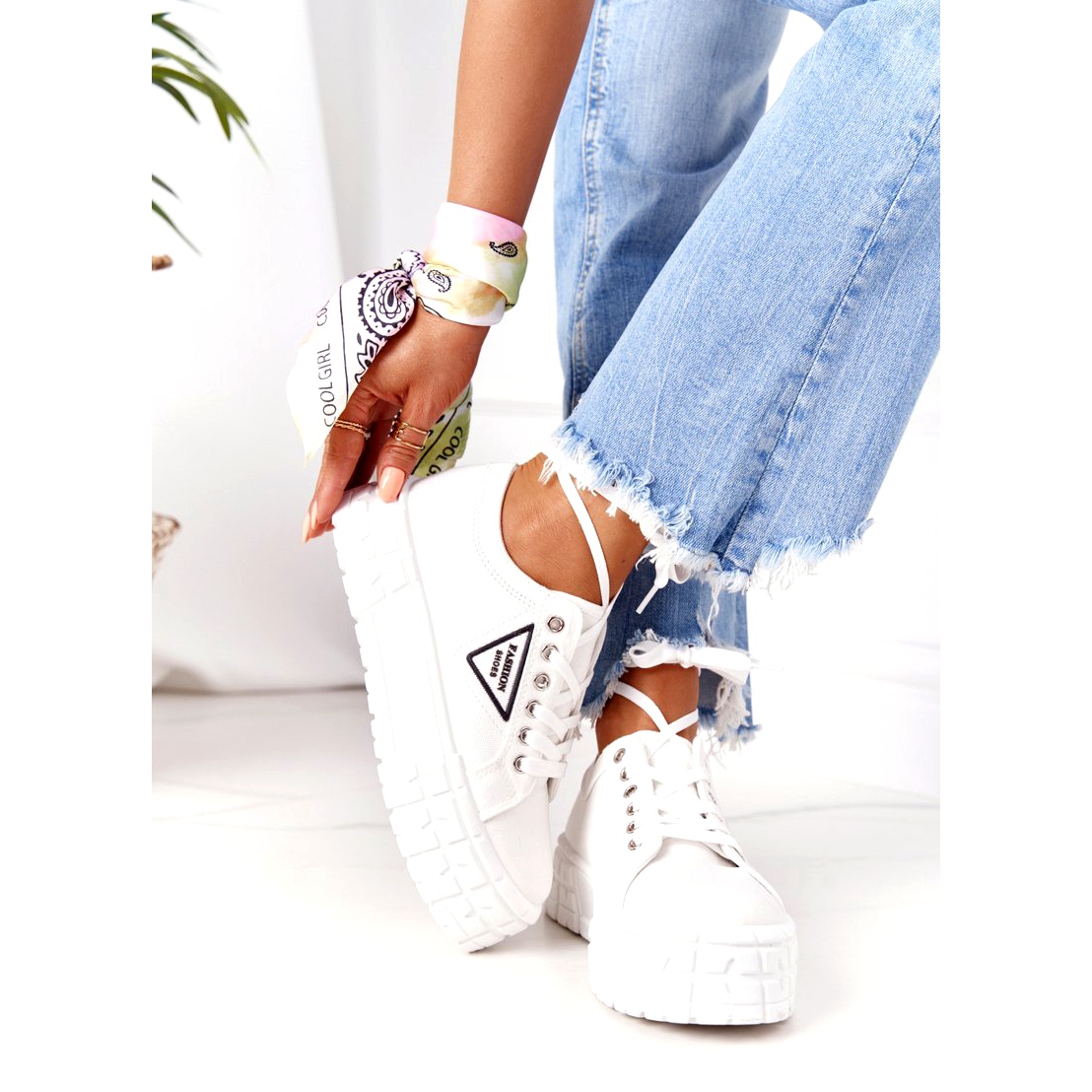 Die weißen Plateau-Sneaker Big City Life für Damen sind ein ideales Angebot für alle Liebhaber modischer und bequemer Schuhe. Diese stylischen Sneaker verfügen über eine große Gummiplattform, die nicht nur ins Auge fällt, sondern auch für hervorragende Dämpfung beim Gehen sorgt. Aus hochwertigen Materialien gefertigt, passen sich die Sneaker perfekt an die Fußform an, wodurch sie auch bei ganztägigem Tragen angenehm zu tragen sind.