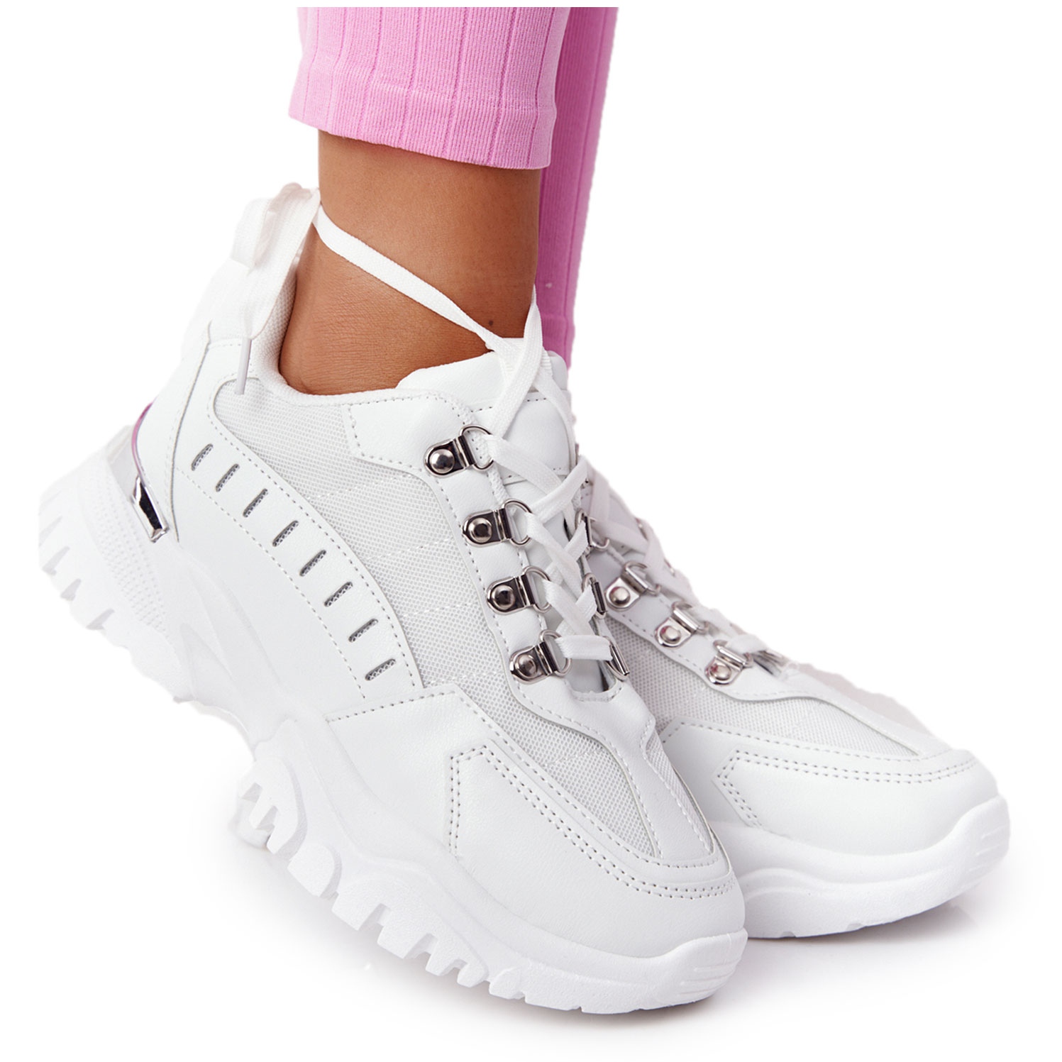 Diese weißen Sneaker passen zu einer Vielzahl von Kleidungsstücken – von lässigen Jeans bis hin zu eleganten Kleidern. Die einzigartige Optik der Schuhe ohne Muster macht sie universell einsetzbar, während der Schnürverschluss eine perfekte Anpassung an den Fuß ermöglicht.